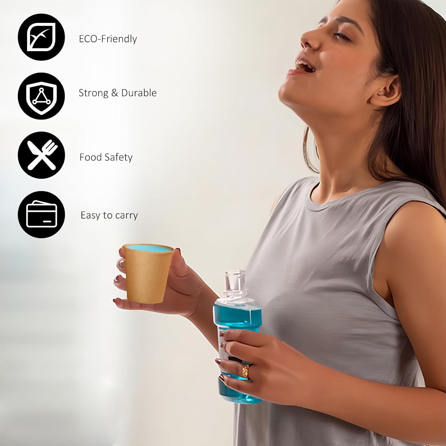 - 【Strong Enough Materials】The sturdy kraft cup is made of thickened high quality paper and the rolled cup rim is firm and strong. The threaded design at the bottom of the cup prevents any leakage, so you can use it several times without the cup becoming weak
