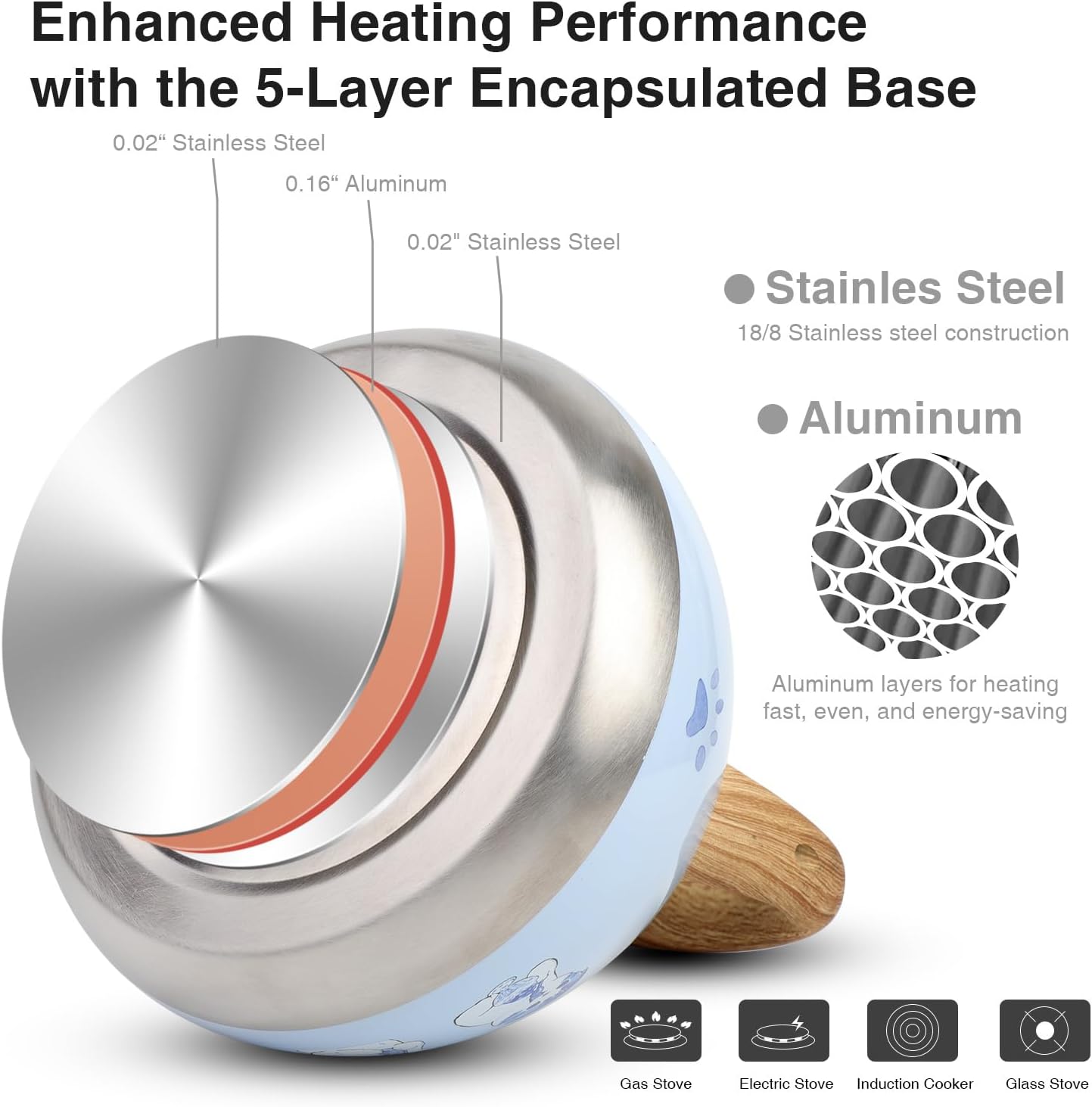- [ Apply to Various Stovetops ] Applicable for induction cooker, electric furnace, gas, and natural gas stovetops. Please use the tea kettle over small or medium heat, it heats very fast and saves energy. SCRATCH: If you meet any shipping problems, please contact us for a free replacement.
