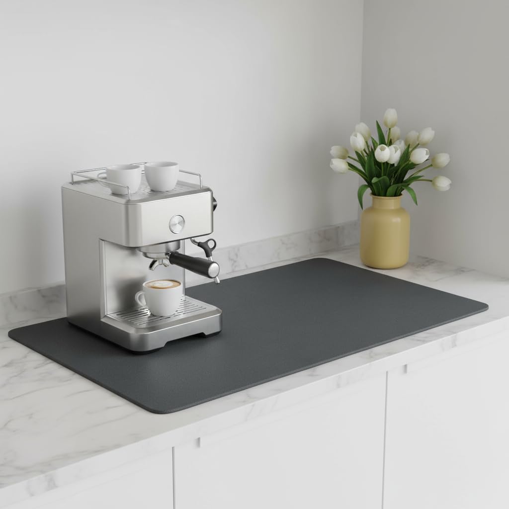 - COFFEE BAR MAT & COFFEE MACHINE ACCESSORIES – Keep your espresso station neat with this absorbent coffee bar mat, perfect for coffee makers, espresso machines, and pour-over setups. A must-have coffee station accessory and stylish coffee maker mat for countertops.