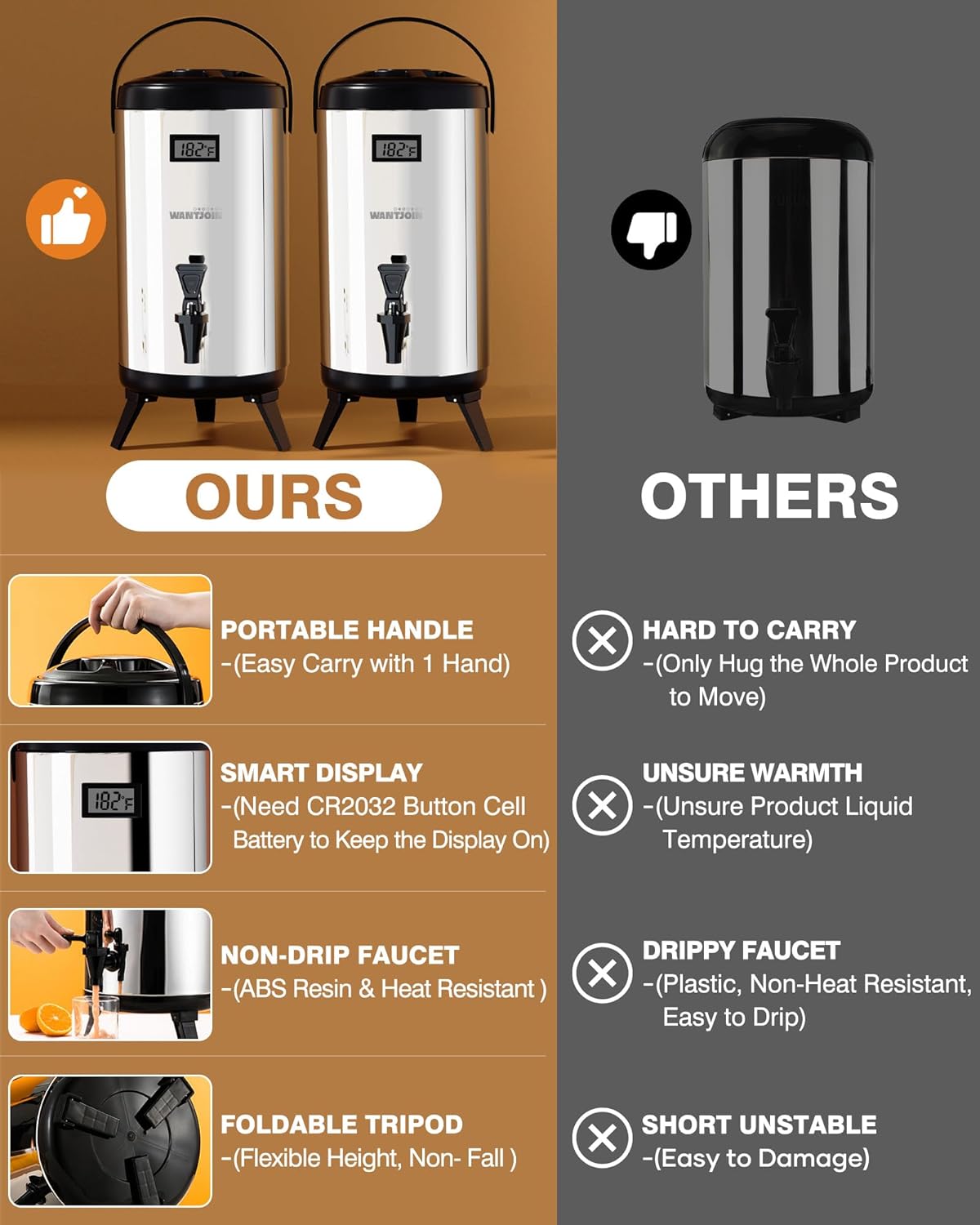 - WantJoin 2 Pack Insulated Beverage Dispenser-75 Cup Hot&Cold water Urn for Catering-Stainless Steel Premium 12 L/3.2 Gallon Hot Drink Dispenser with Spigot for Coffee & Hot tea,Cold Milk,Water,Juice