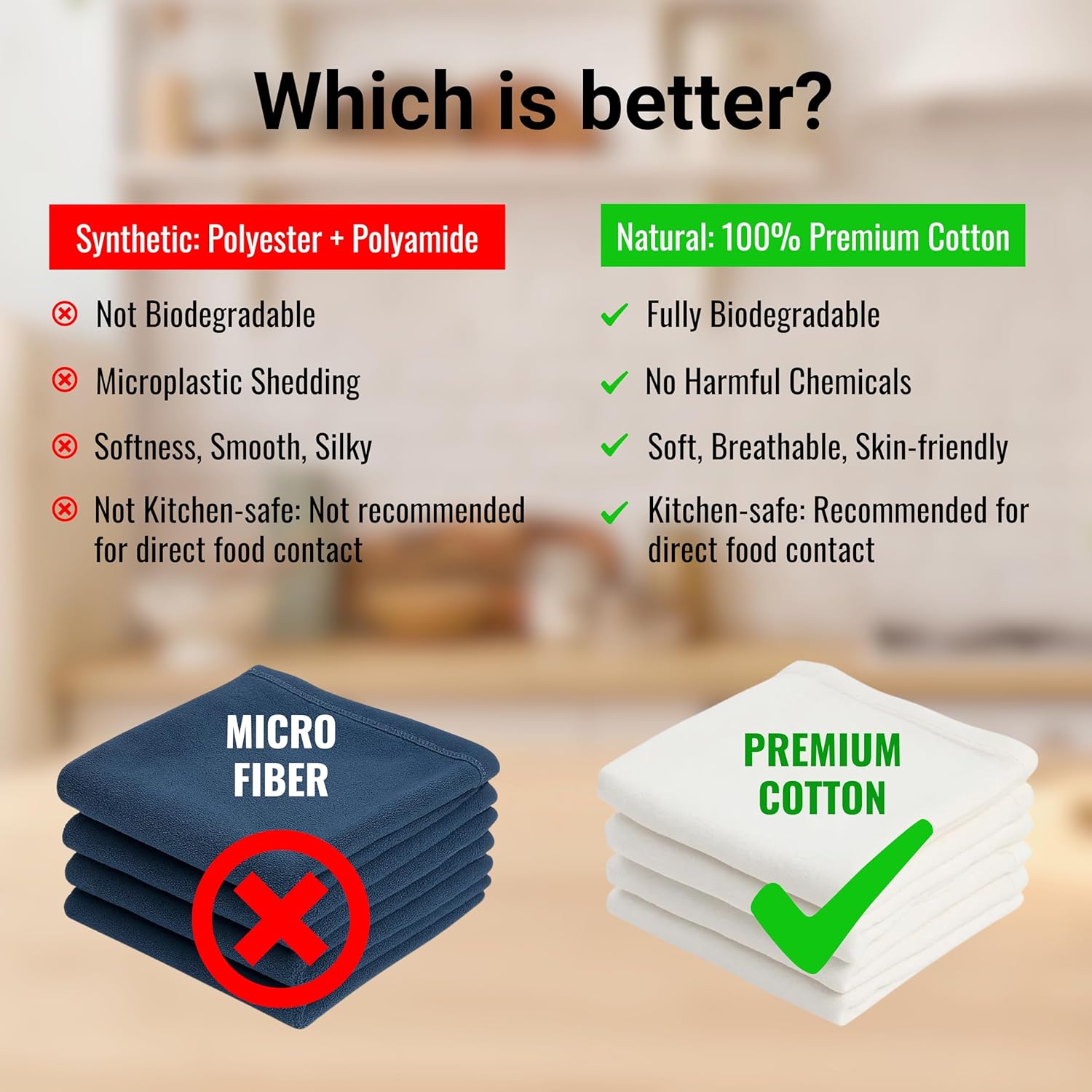 - MULTIPURPOSE: Their lint-free pure ring-spun cotton composition makes them perfect for drying glassware, hands and surfaces. Moreover, they excel at tasks like cheese straining, salad spinning, and even serving as reliable dough covers for baking.