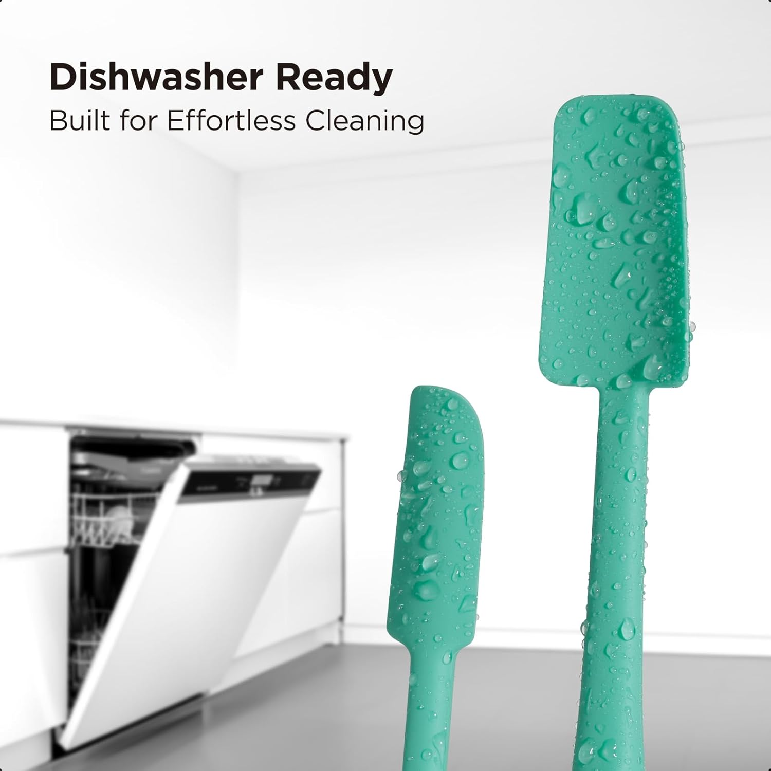 Kitchen Mama WaltzGrip Platinum Silicone Jar and Can Spatula Utensil Set: Heat-Resistant, Nonstick Scraper, Scooping, Perfect for Smoothies, Jam, Cream, Peanut Butter, Dishwasher Cooking Gadget (Teal)