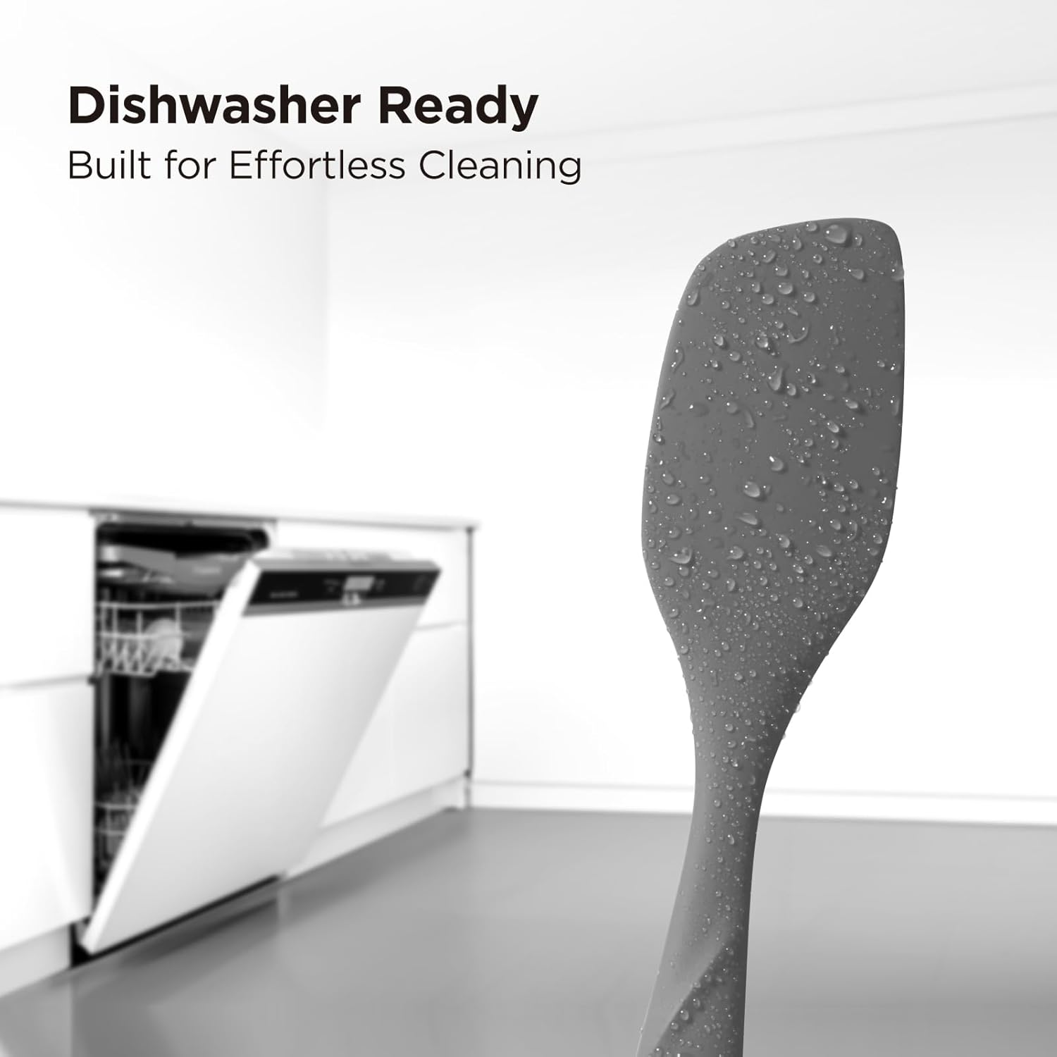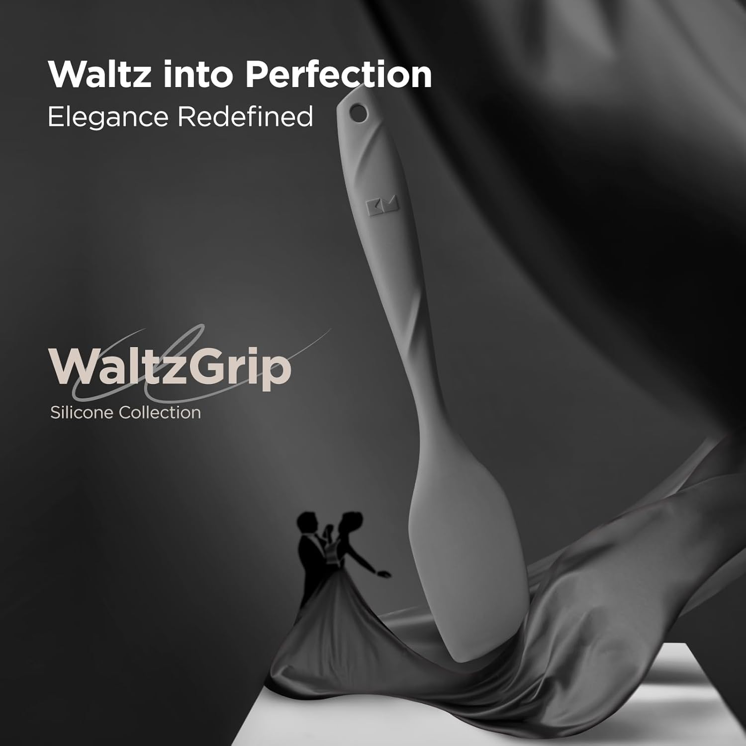 Kitchen Mama WaltzGrip Platinum Silicone Scraping Spatula: Heat Resistant, Seamless, Non Stick for Frying Pan Cookware, Safe, Flexible Bowl Scraper - Ideal for Mixing, Baking, Stirring (Metal Gray)