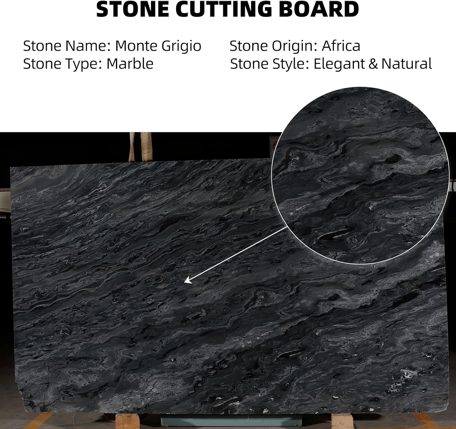 - KITCHEN ESSENTIAL: The unique marble cutting board serves as a highlight in your kitchen. Exquisite marble patterns and natural material elevate your kitchen into a stylish culinary space. While its non-slip feet securely hold the board in place during prep, helping to guard against injury, its convenient non-stick surface allows for the easy rolling of dough, pastries, and fondant with a minimal amount of flour. It's even great for chocolate tempering and serving cheese!