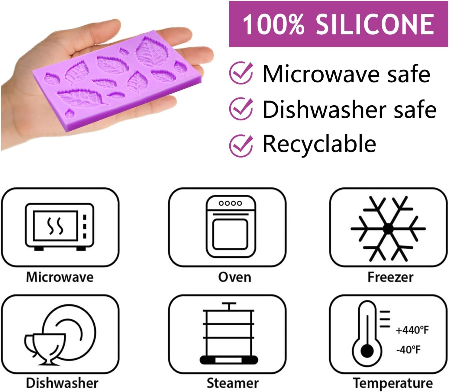- [Good Material]: Flowers and leaves candy molds are made of 100% food-grade silicone, BPA-free. Can withstand temperatures is -40°F to +440°F. Safe to use in ovens, microwaves, dishwashers, and refrigerators.