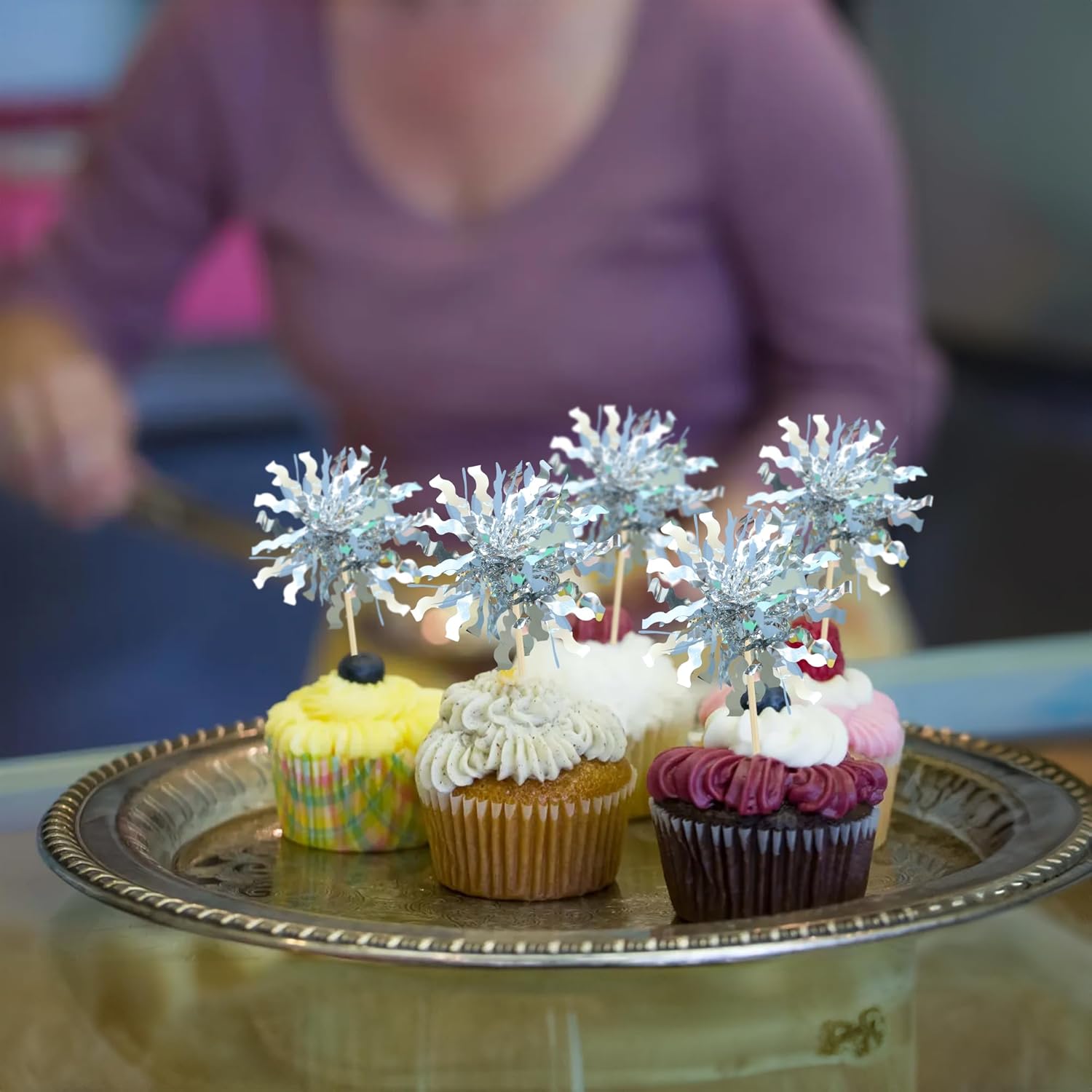 - -Premium Material: These Foil Firework Cupcake Toppers are made of high quality foil and food-grade toothpick, very safe to put them on cakes, cupcakes, ice cream, fruits, pie, dessert, cheese or any dish and food appetizer you want to decorate.