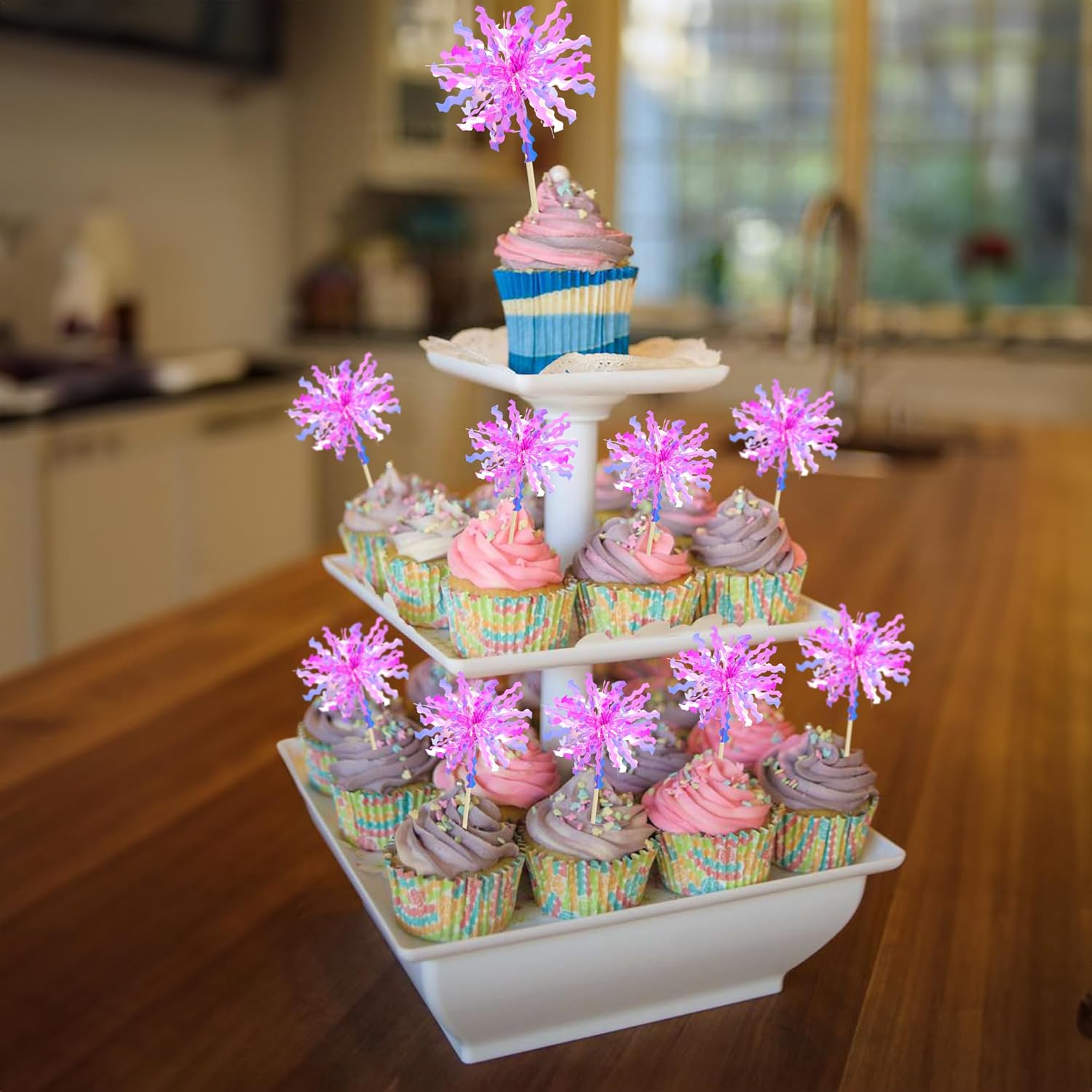 - -Package included: 20Pcs Foil Firework Cupcake Toppers. Comes with assembled, so you can insert into your cake directly, which make your cake more interesting.