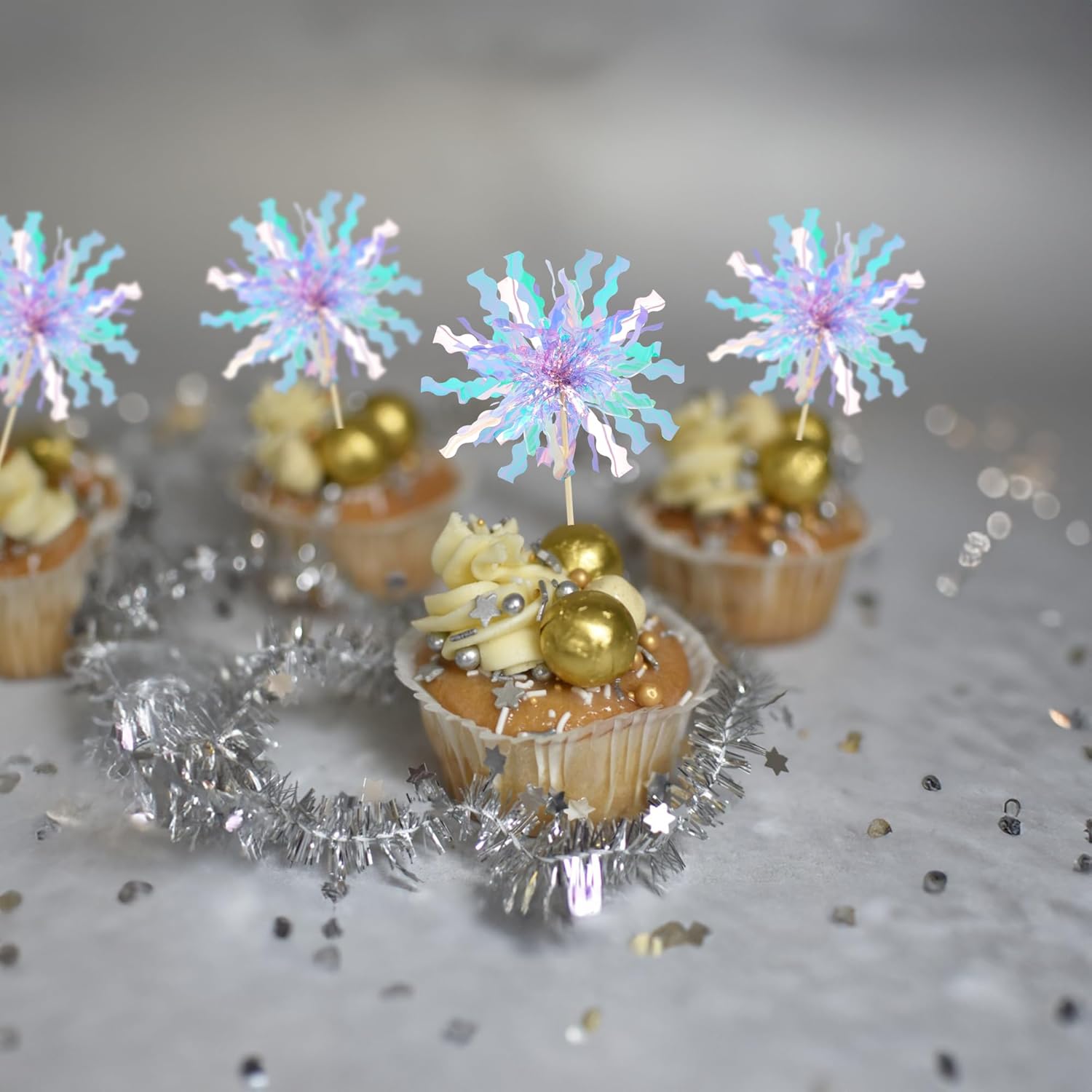 - -Premium Material: These Foil Firework Cupcake Toppers are made of high quality foil and food-grade toothpick, very safe to put them on cakes, cupcakes, ice cream, fruits, pie, dessert, cheese or any dish and food appetizer you want to decorate.