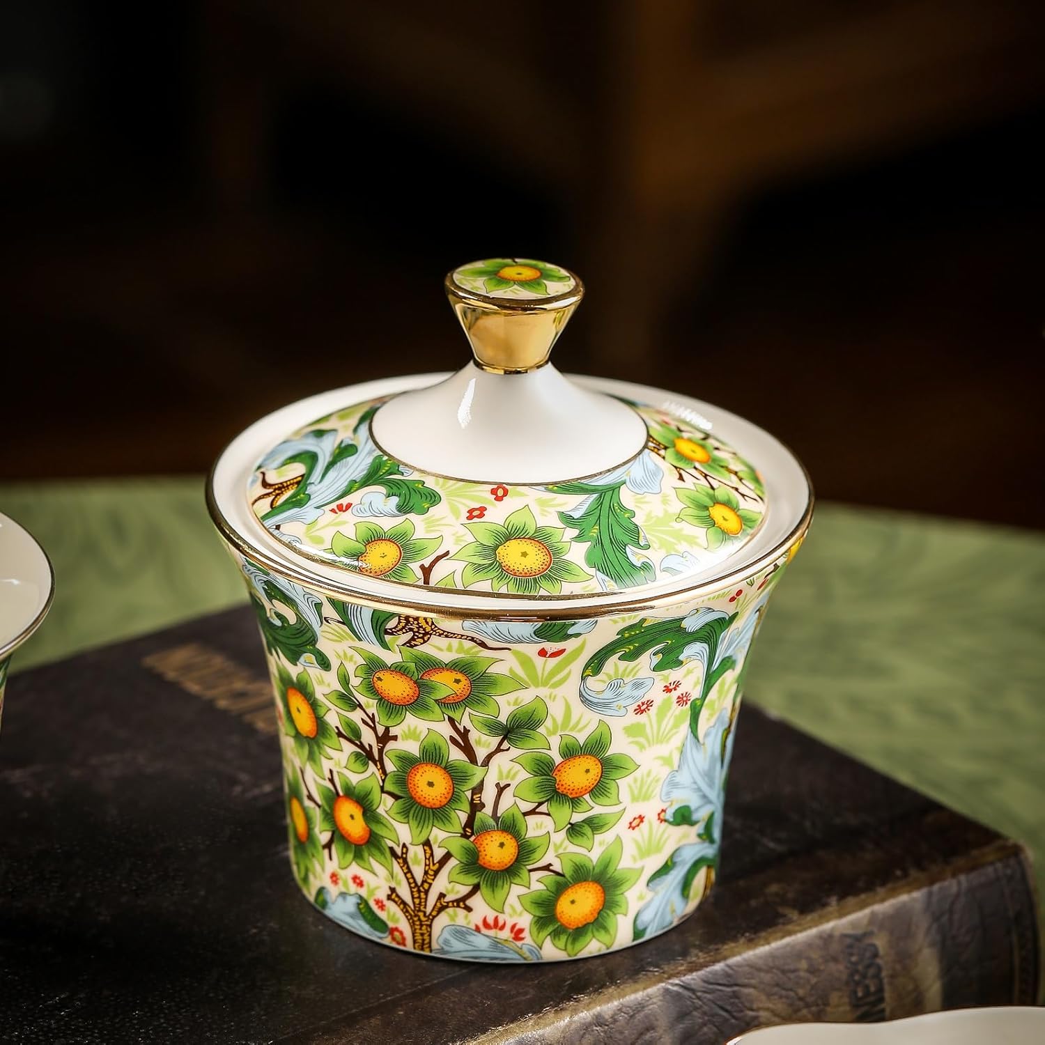 ACMLIFE Tea Set for Adults- Fine China Tea Set for 6, 21-Piece Vintage Coffee Set English Porcelain Tea Pot Sets for Adult Tea Party for Women Gift (Fruits Green, Extra Large 21)