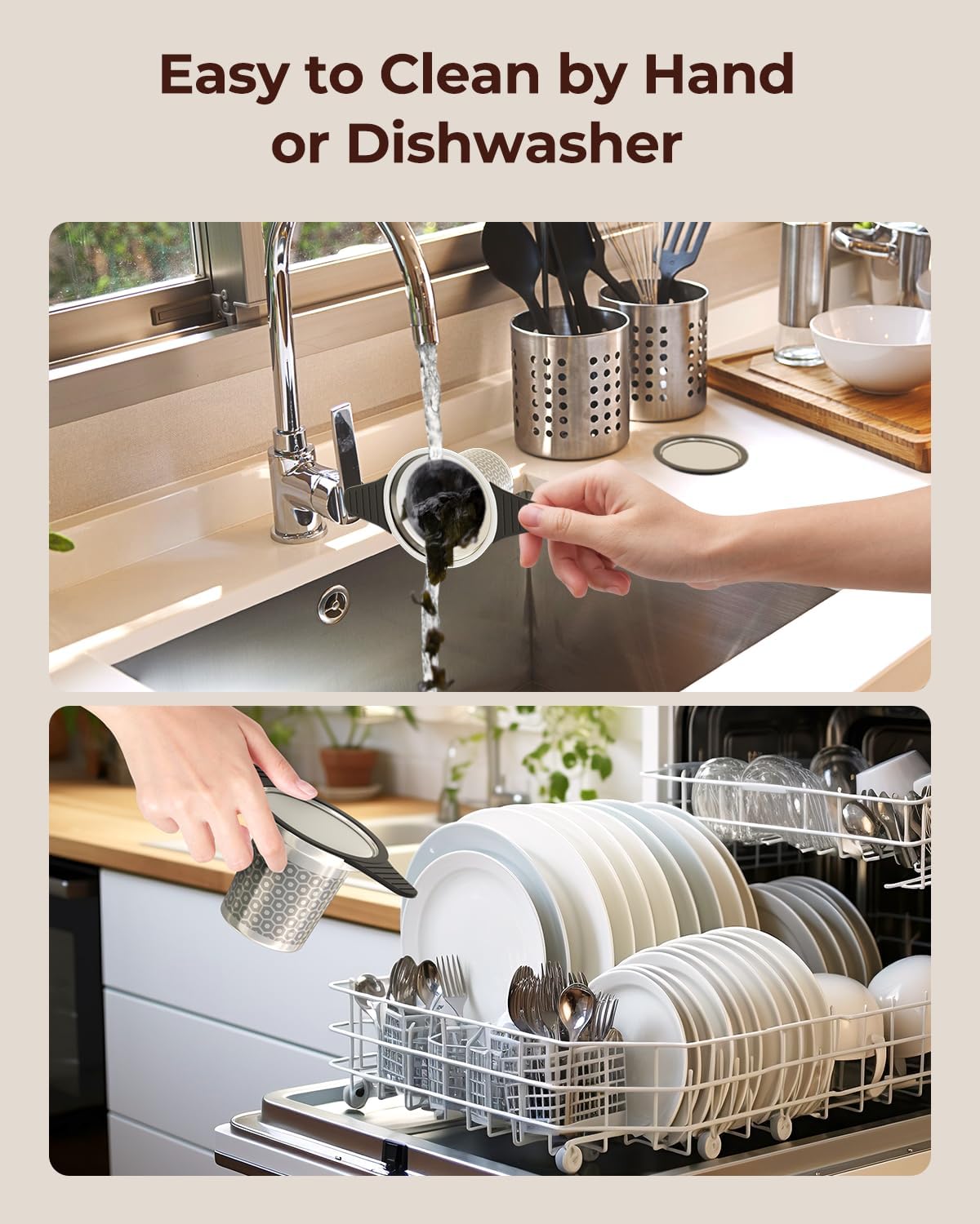 - Versatile Design: The dual-use coaster lid retains heat during steeping and serves as a saucer for the infuser after brewing. The double-handle design (Bottom: 2.2” - Top: 5.5”) ensures the tea strainers & filters fit a wider range of cups, mugs, teapots, and pitchers with openings between 2.2" and 5.5".
