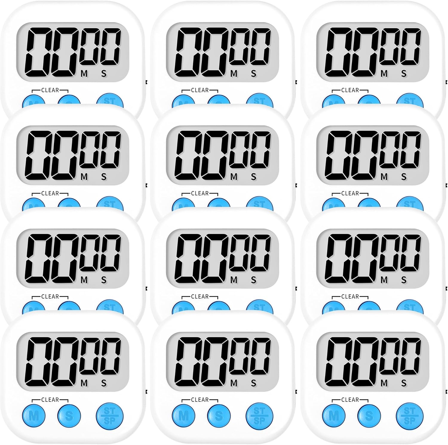 ZILLEEN Kitchen Timer Digital with Magnetic Back for Kids Classroom, White 12 Pack