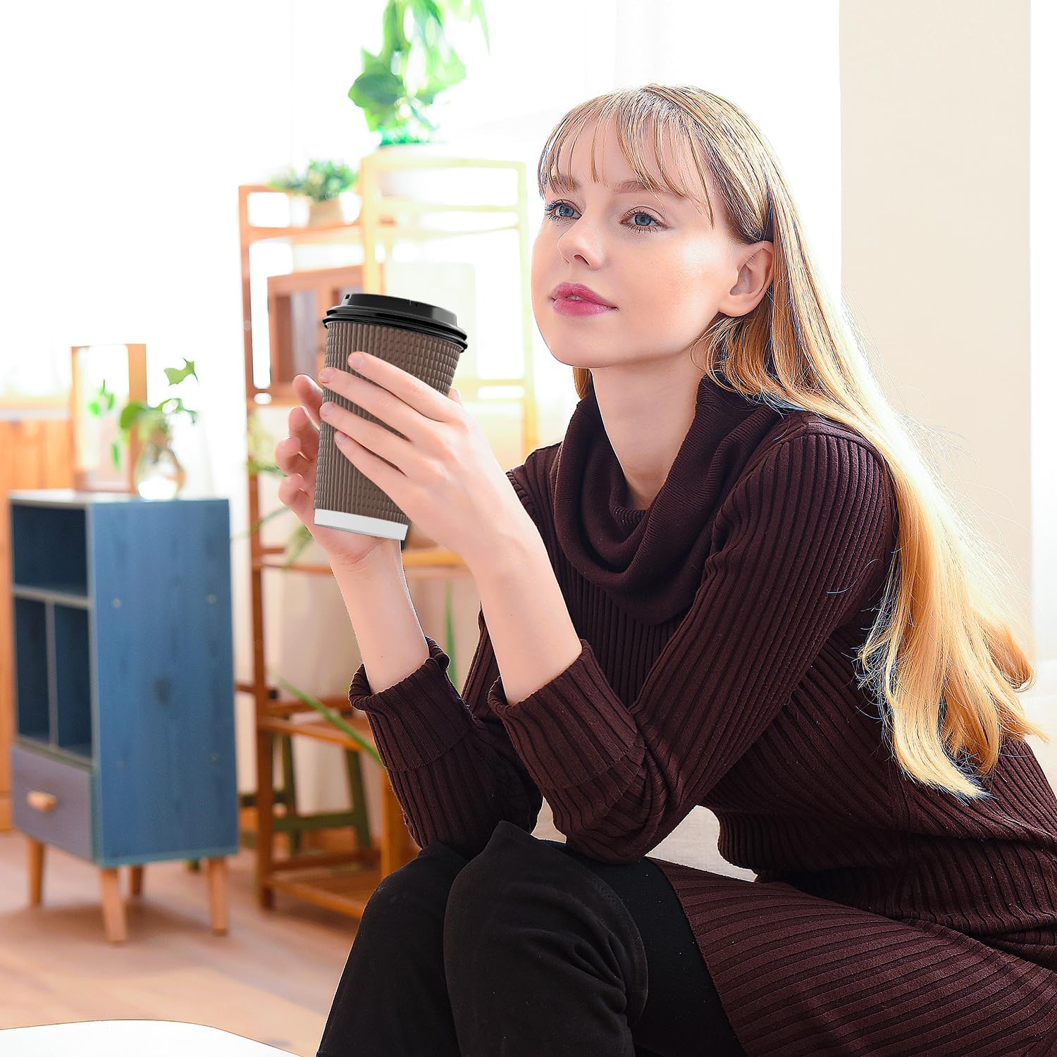 - 【NO SLEEVE NEEDED】: With sturdy construction and insulated ripple, these coffee cups with lids will keep hot drinks hot, while still remaining comfortable in your hand. No more fumbling with those pesky sleeves.