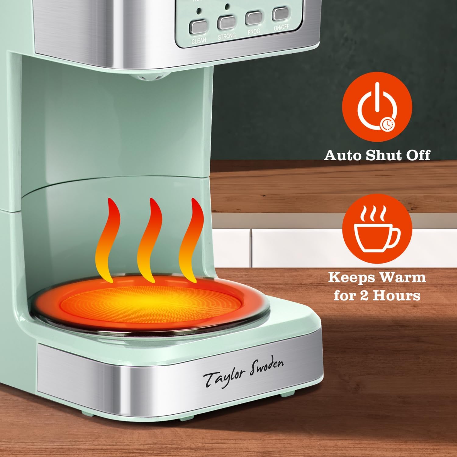 - ăTWO-HOUR AUTO-SHUTOFFăThe nonstick carafe plate keeps coffee warm for up to 40 minutes after brewing is complete. The coffee pot maker automatically turns off after 2 hours for peace of mind. The drip coffee maker is easy to fill and features a large water window that's easy to view