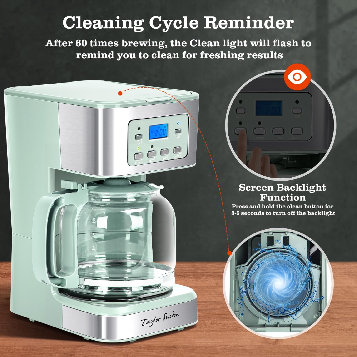 - ăCLEANING CYCLE REMINDERăYou can know when itâs time to clean the compact coffee maker by the flashing green light. If you have any questions about your coffee machine, the customer service team will help you