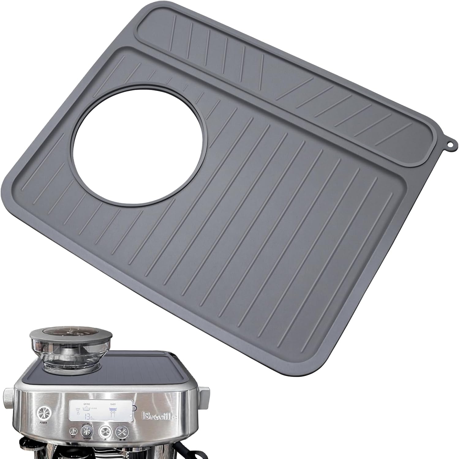 Coffee Mat for Breville 878/881, Espresso Tamper Mat, Food Grade Silicone Non-Slip, 11.42in x 9.53in, Waterproof Heat Resistant, Espresso Tamping Station for Espresso Machine Accessories (Grey)