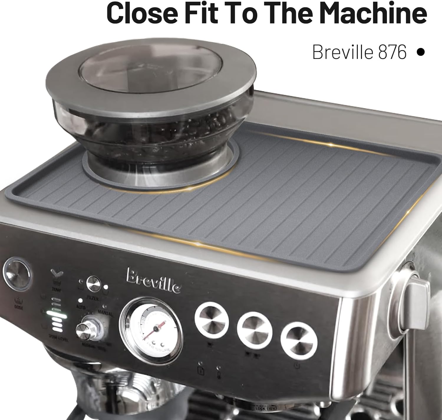 Coffee Mat for Breville 876, Espresso Tamper Mat, Food Grade Silicone Non-Slip, 10.83in x 7.48in, Waterproof Heat Resistant, Espresso Tamping Station for Espresso Machine Barista Accessories (Grey)