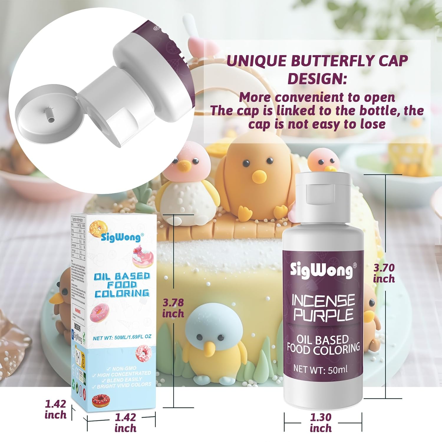 Oil Based Food Coloring for Chocolate - 50ml Incense Purple Upgraded Edible Oil Based Food Dye for Cake Decorating, Baking, Candy Melts, Cookie, Icing Frosting, Fondant, Meringues - 1.69 Fl.Oz Bottles