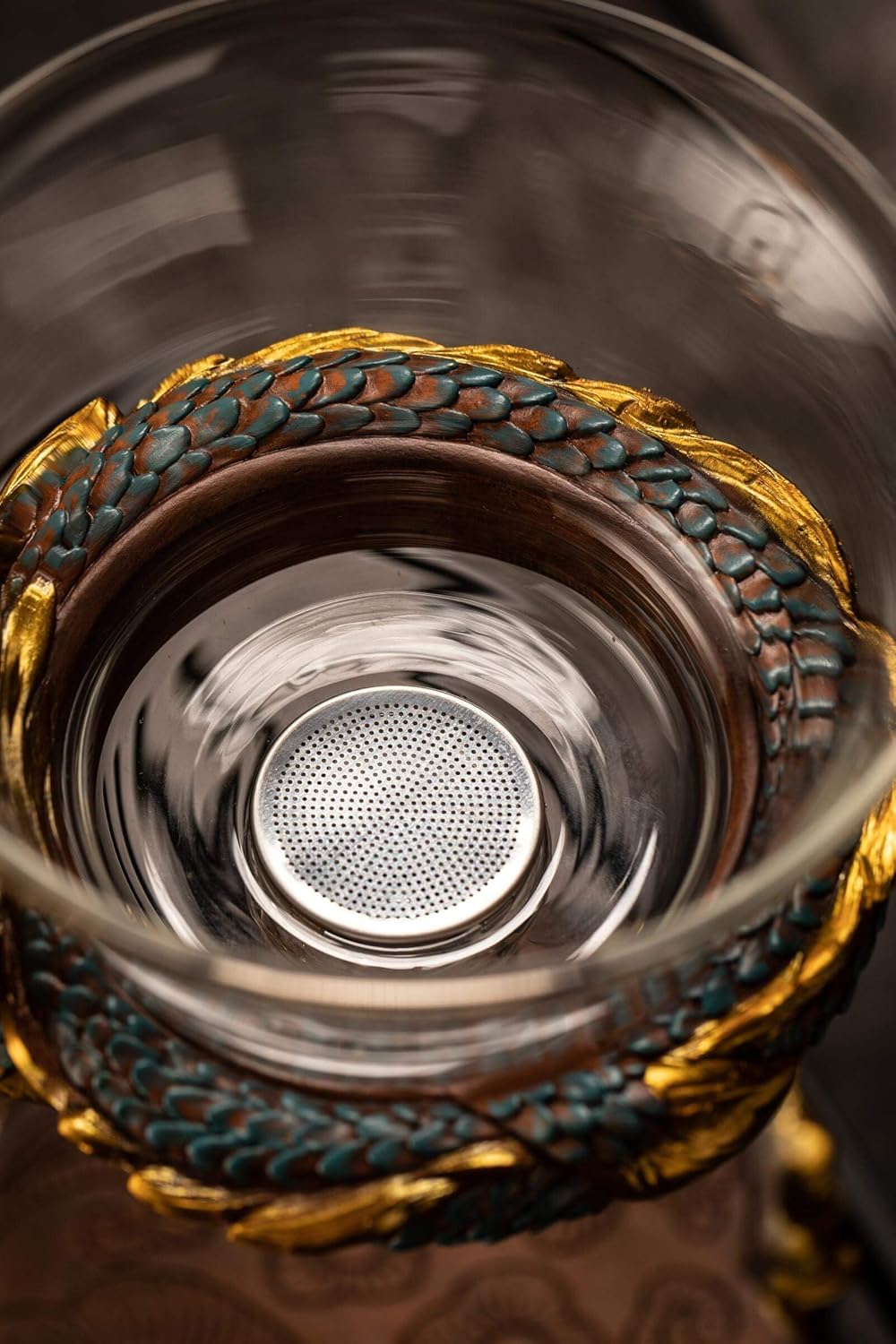- FEATURES: The dragon sculpture frame and cups of the tea set can be separated easily. Stainless steel filter can effectively filter tea residue.