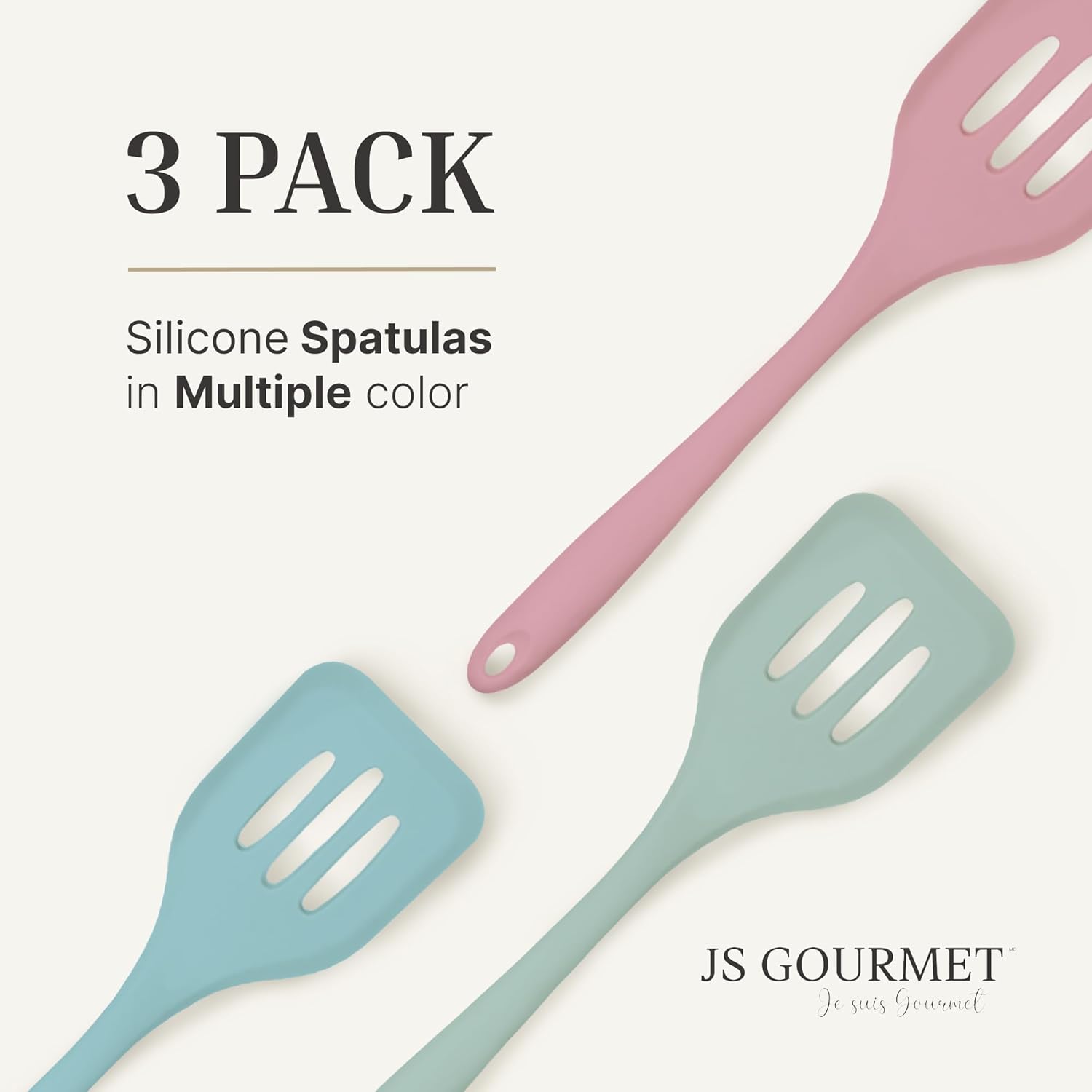 3 Pcs Colorful Silicone Slotted Turner Set, Heat Resistant Non-Scratch Kitchen Spatula Flipper with Comfortable Handle for Non-Stick Cookware