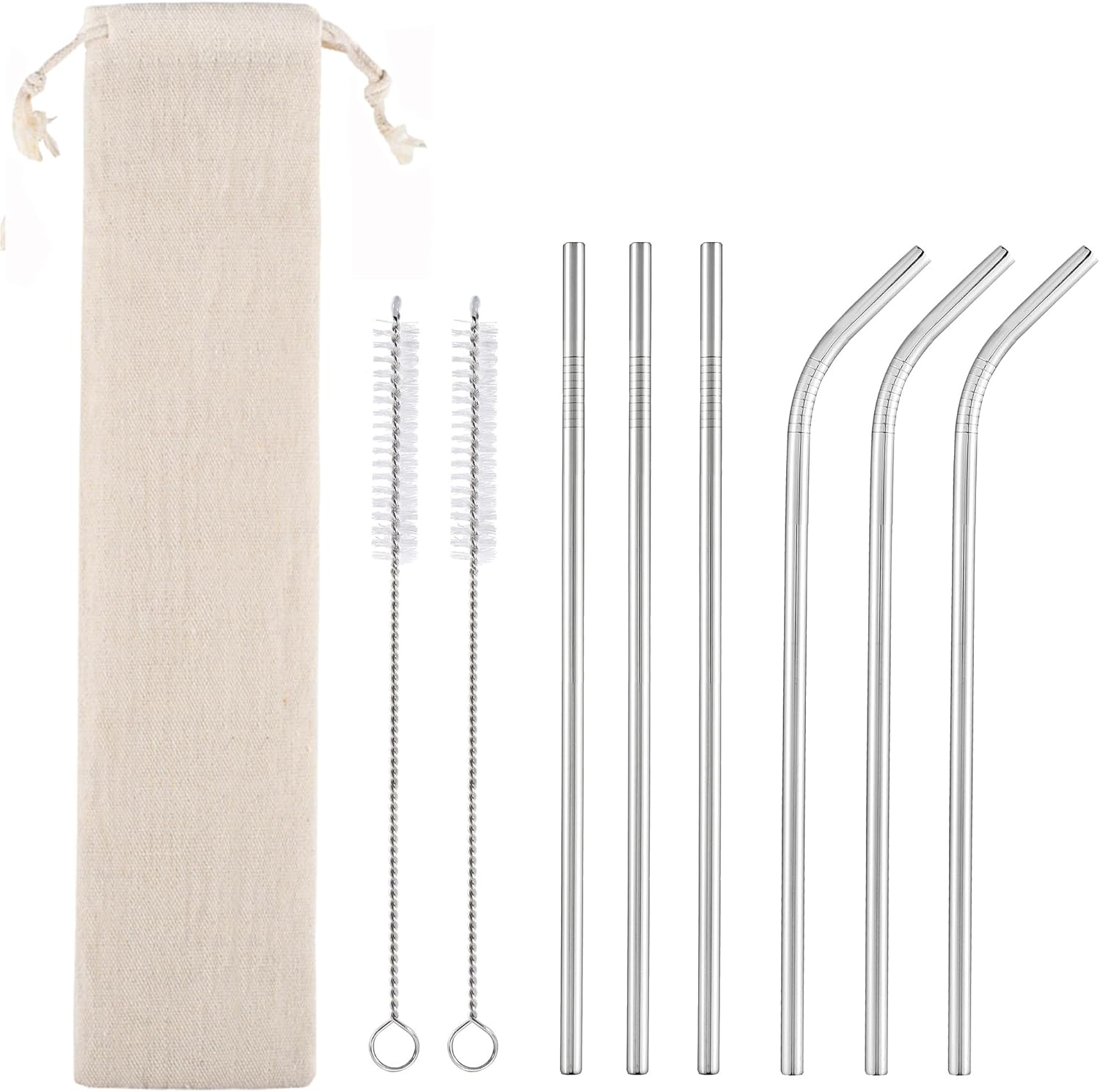 - Set of 6 reusable straws with case: 3 straight straws and 3 bent straws of 8.5” for 20 oz tumblers. Drinking straws to drink milk, coffee, ice tea, cocktail and other beverage is a good choice, they will add more fun to your party, picnics, cocktail party, boating and so on.