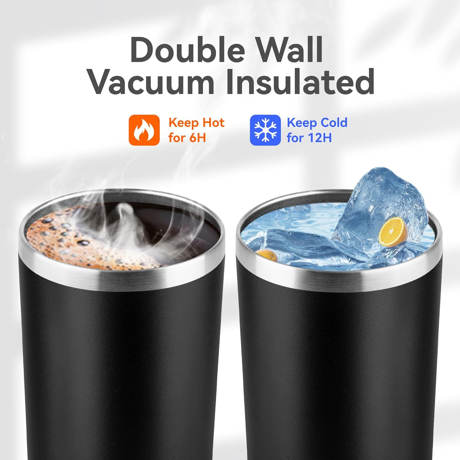 - DOUBLE WALL VACUUM INSULATION:Enjoy Beverage Cold or Hot. Under normal temperature, it can keep a tumbler of ice for 12h until the ice totally melt, or hot coffee warm for 6h