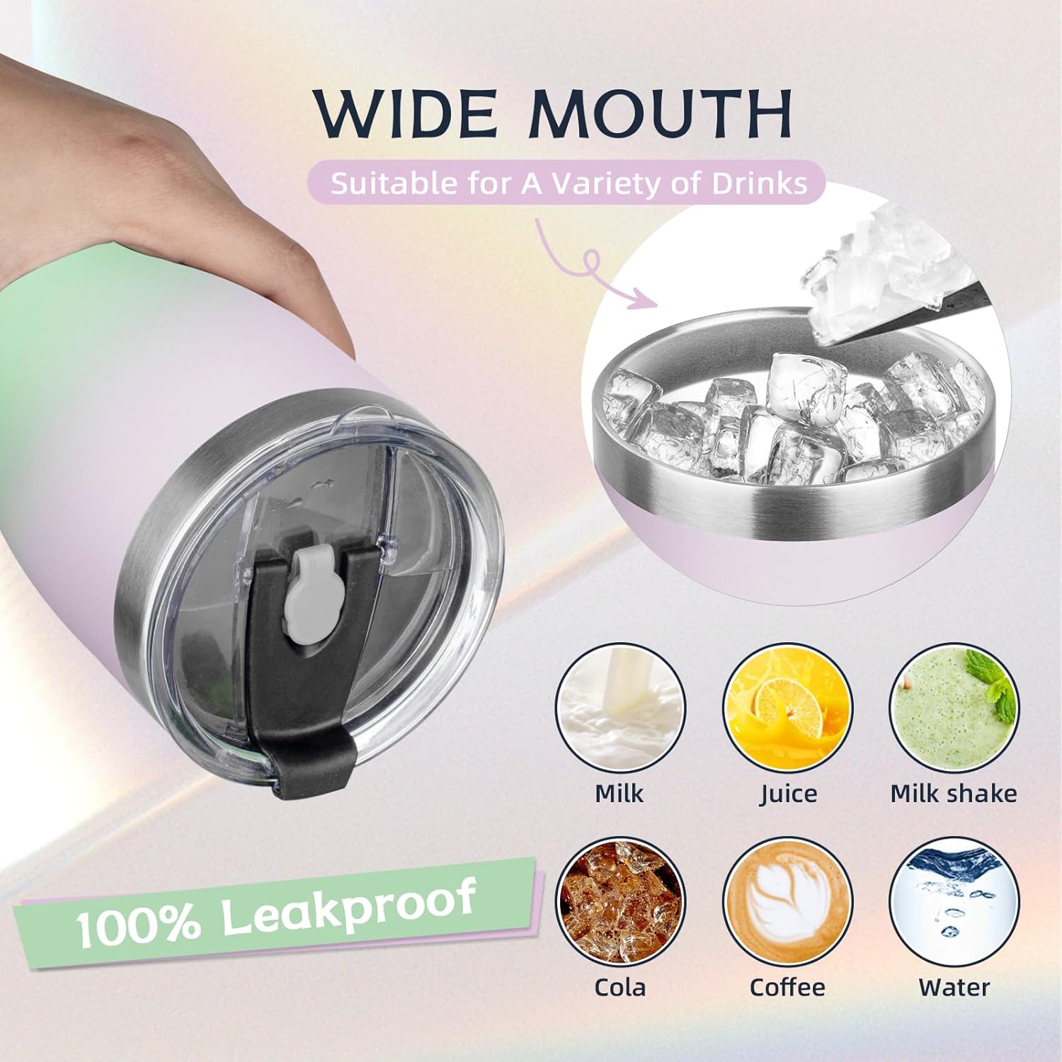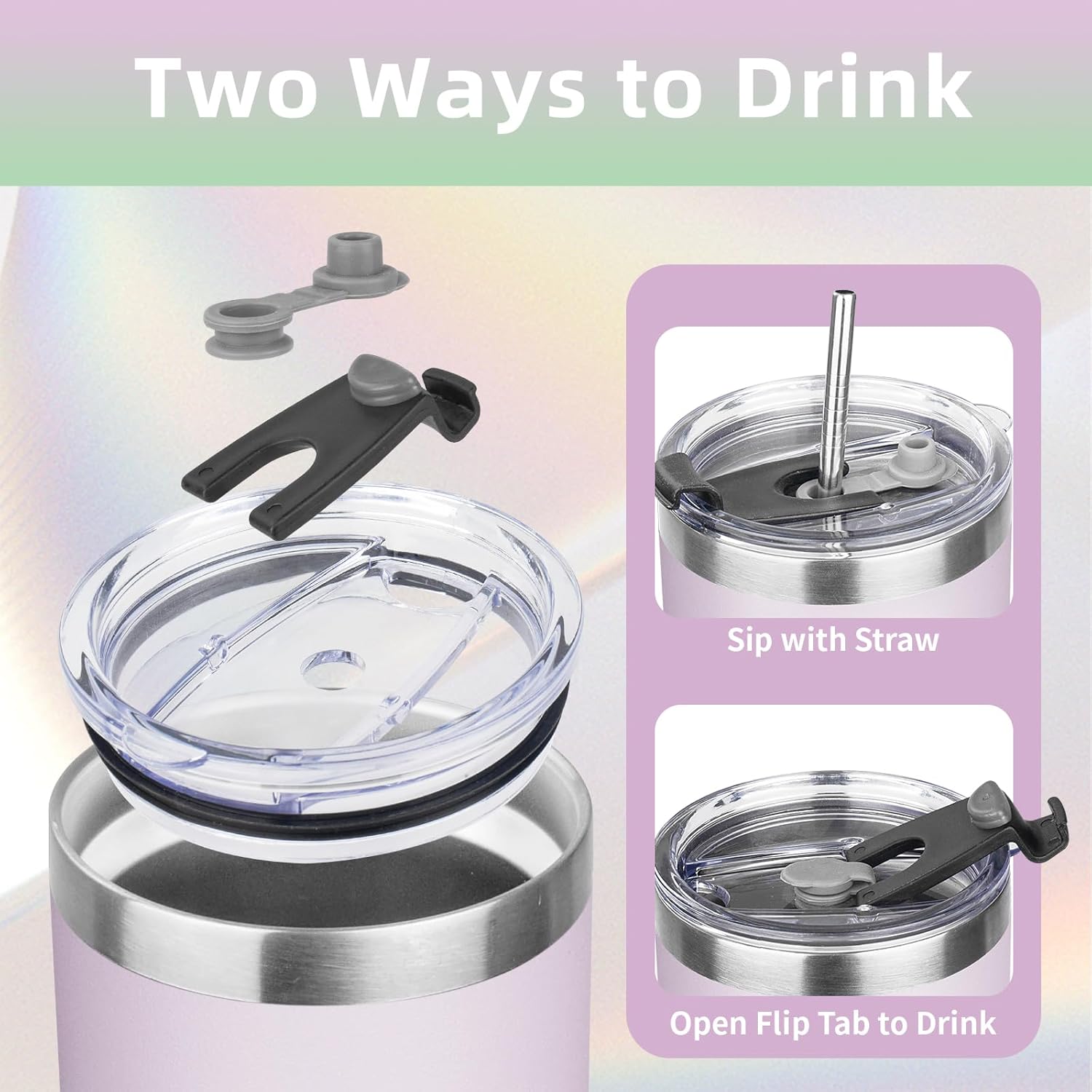 - â¨ăSpill-proof Lidă: The lid of the thermos cup is made of unique sealing technology, basically no leakage if you move it at any angle; If the cup is filled with hot water, please open one of the drinking holes first, so that the lid will be easier.