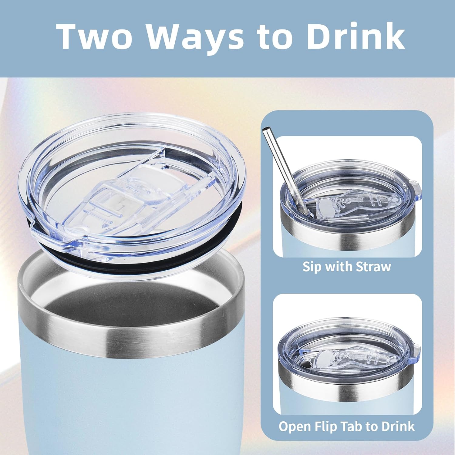 MEZMUT 1 Pack 20oz Insulated Coffee Tumbler with Lid and Straw Double Wall Vacuum Insulated Cup Stainless Steel Travel Mugs Leakproof Powder Coated Tumbler for Indoor Outdoor(Sky Blue)