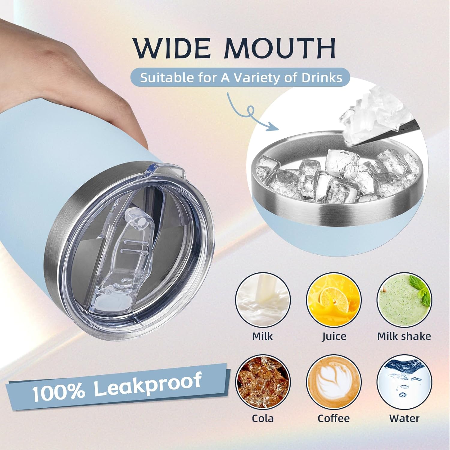 - â¨ăSpill-proof Lidă: The lid of the thermos cup is made of unique sealing technology, basically no leakage if you move it at any angle; If the cup is filled with hot water, please open one of the drinking holes first, so that the lid will be easier.