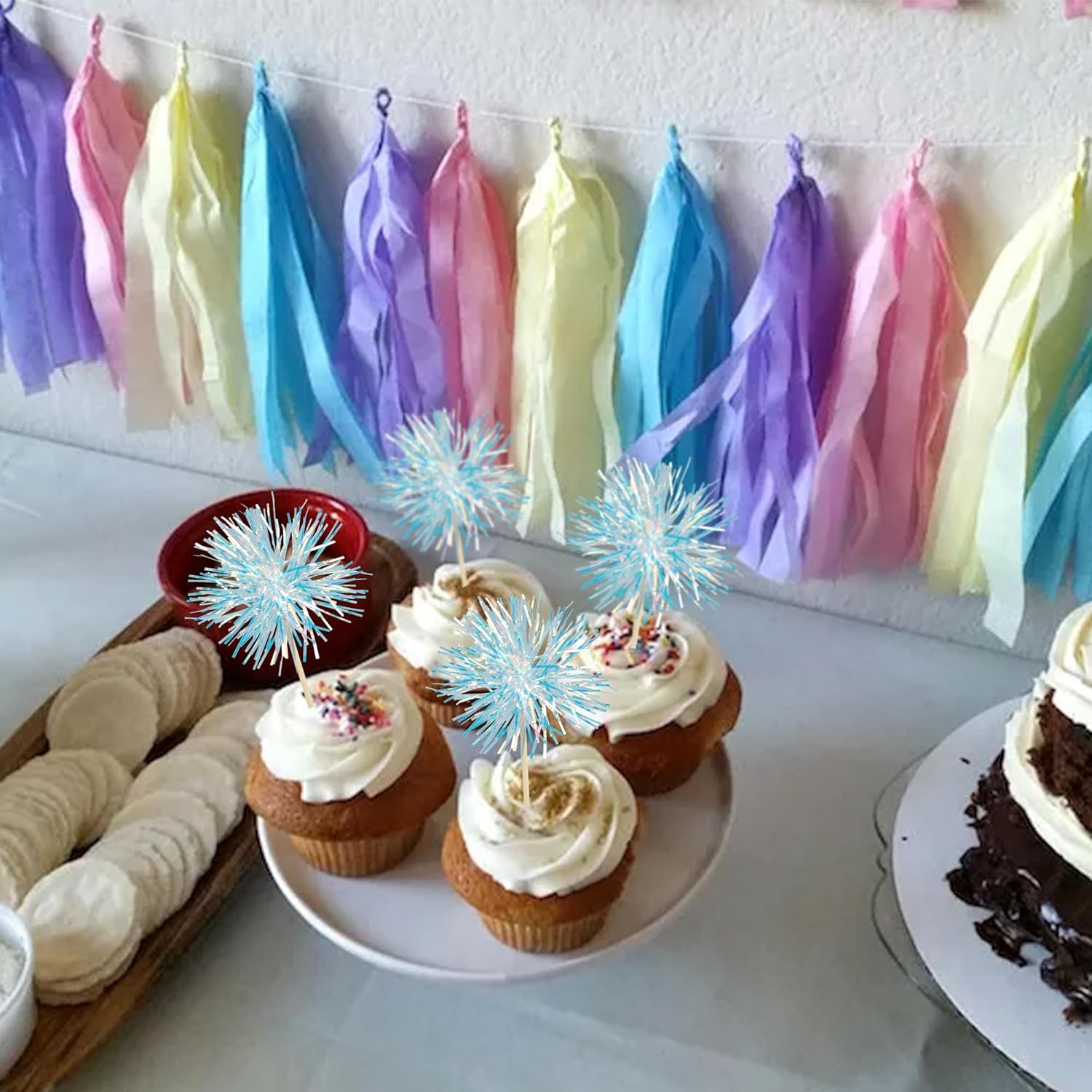- -These Foil Firework Cupcake Toppers are so cute and good for birthday theme party cake decorations. They can make your cupcake more attractive and bring the fun to your party. You can also apply them for ice cream, fruits, cookies and other desserts.