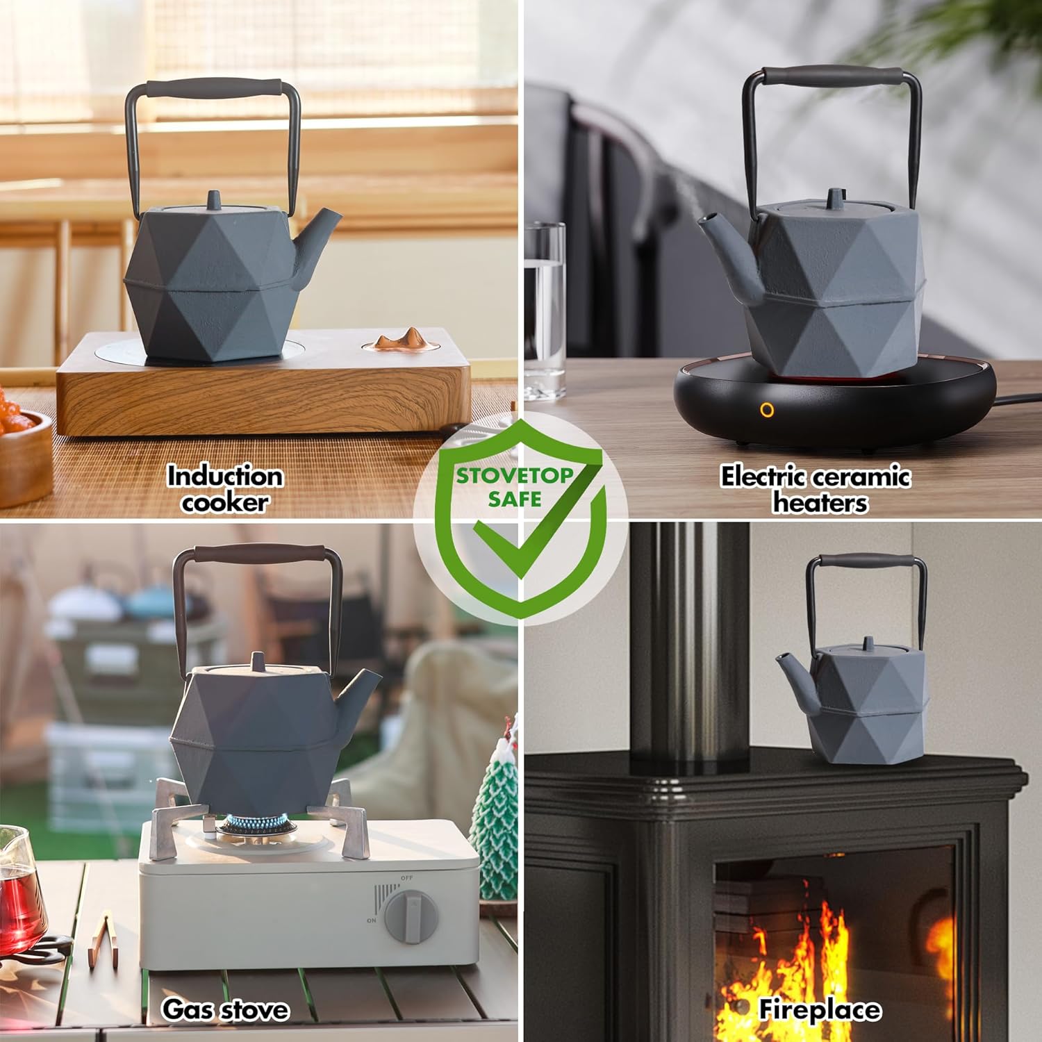 - Versatile Use: This 35oz Japanese teapot is suitable for boiling water, steeping tea, and making coffee, serving 2-3 people with 3-4 cups. It is compatible with induction cookers, electric stoves, natural gas stovetops, as well as firewood stoves and gas stoves for outdoor camping, with the use of a low flame recommended.