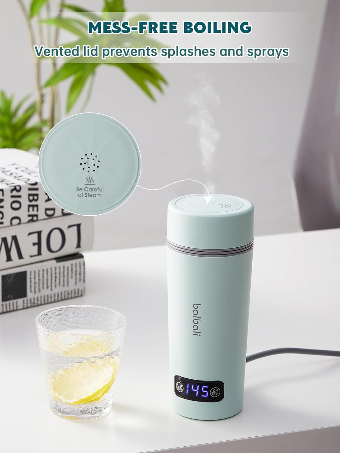 - Mess-Free Boiling: Vented lid prevents accidental spills during operatio