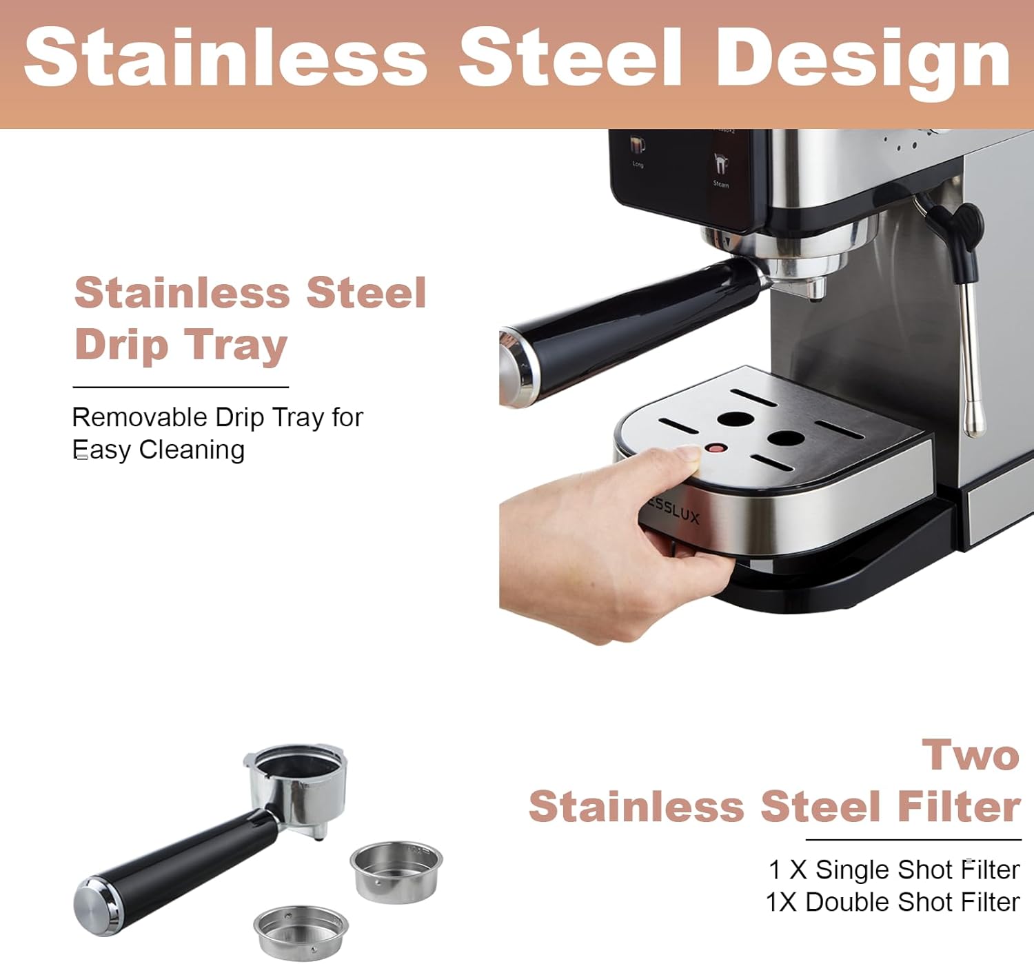 - 【1-Year Warranty Espresso Machine with Reliable Support】Backed by Tesslux’s comprehensive 12-month warranty and dedicated customer service team. Enjoy worry-free brewing with guaranteed product quality and technical assistance.