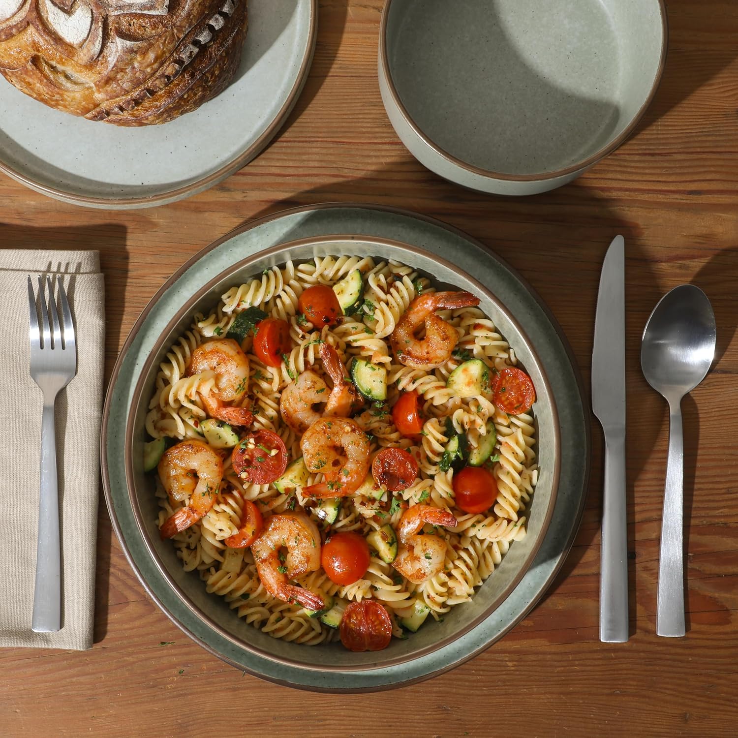 - WEAR-RESISTANT STONEWARE: Sturdy stoneware plates and bowls crafted to serve meals every day for any style, occasion, and budget. Fired at high temperatures to create a non-porous surface, this dinnerware set ensures strength and durability for long-lasting use.