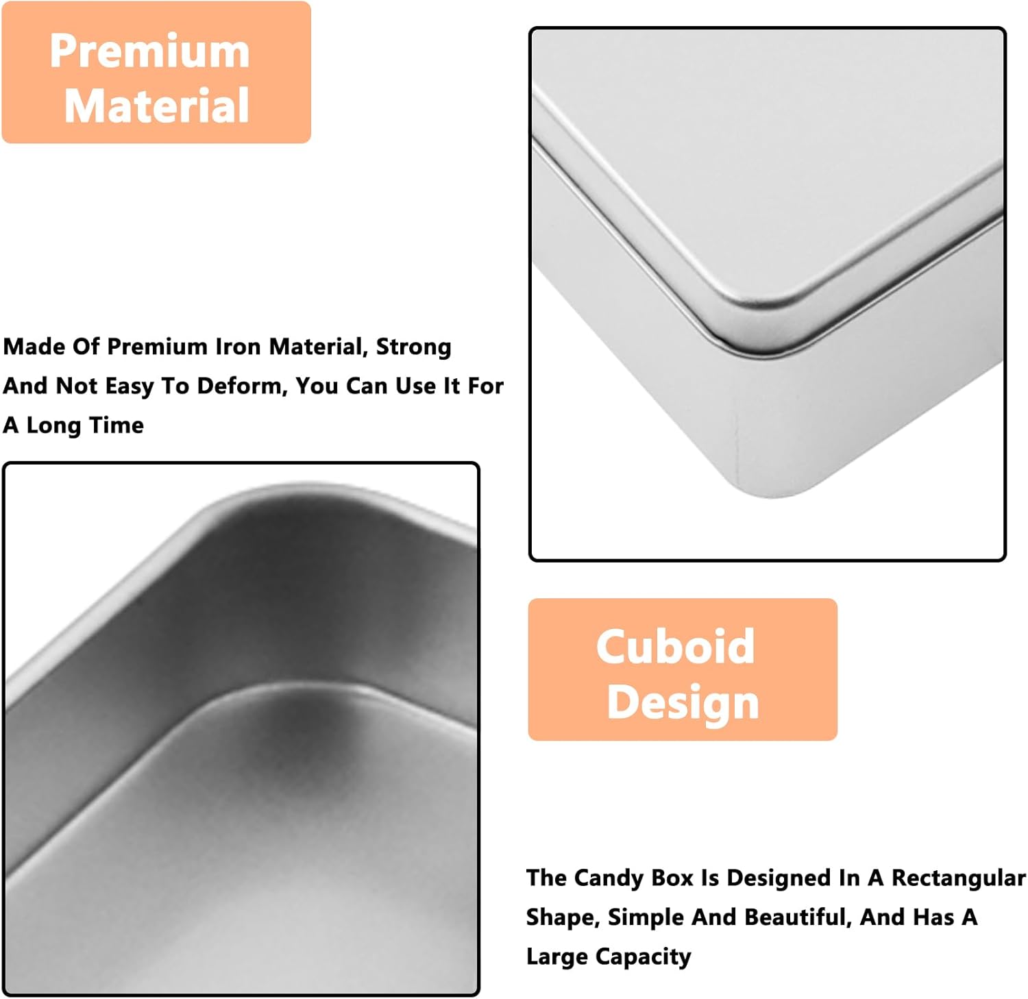 - High Quality Material - These metal empty boxes are made of tinplate,durable to use,not easy to break and rust,and have well-polished edges for easy placement anywhere.Each box comes with a matching silver press-top lid.