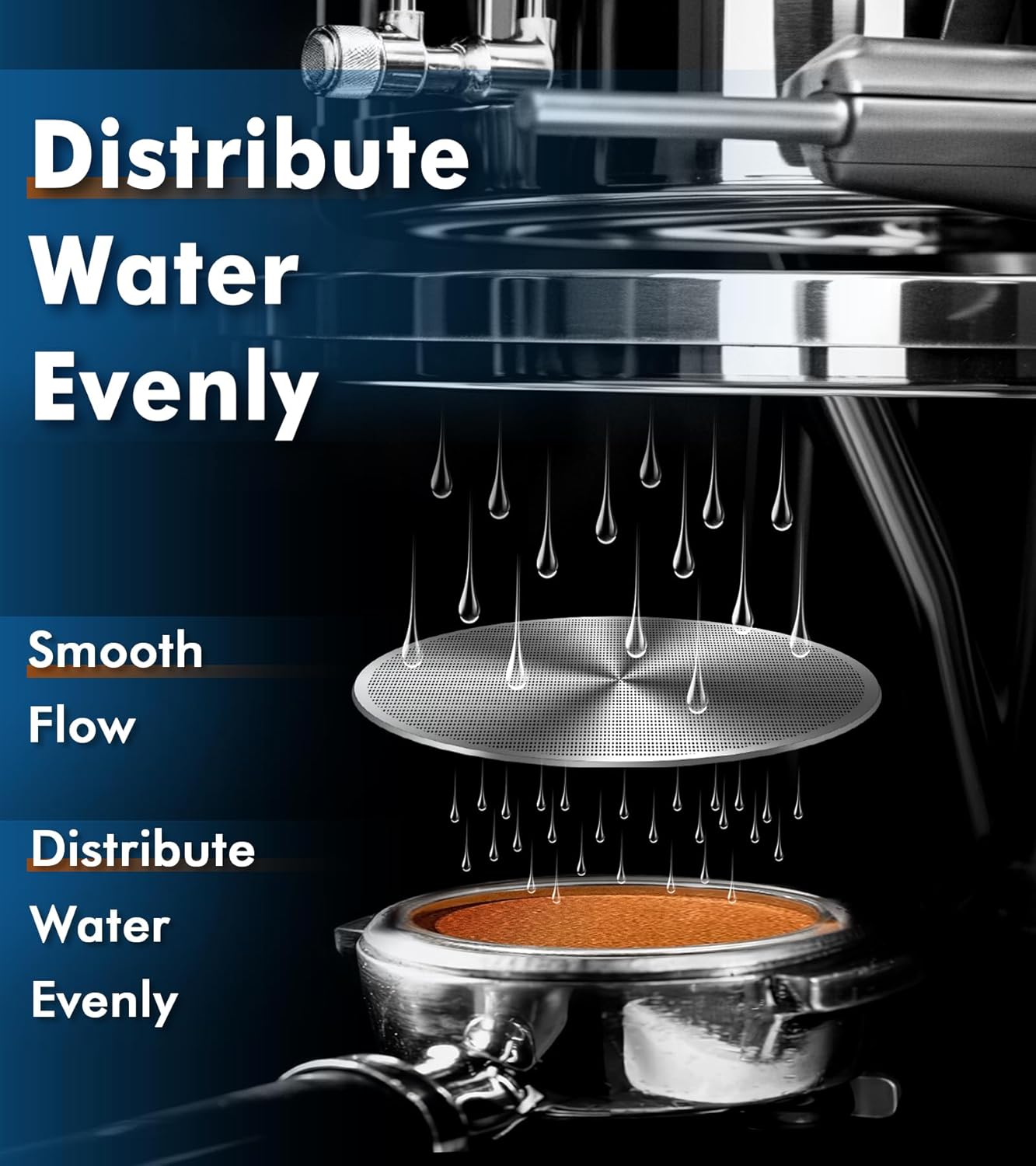 - Optimized Performance: Our puck screen 54mm is carefully designed to be only 0.2mm thick and made of the latest high-strength 316 stainless steel, is smooth compare with others rough and prickly edges. These coffee machine accessories disperse water evenly, improving extraction efficiency and consistency, for great coffee every time.