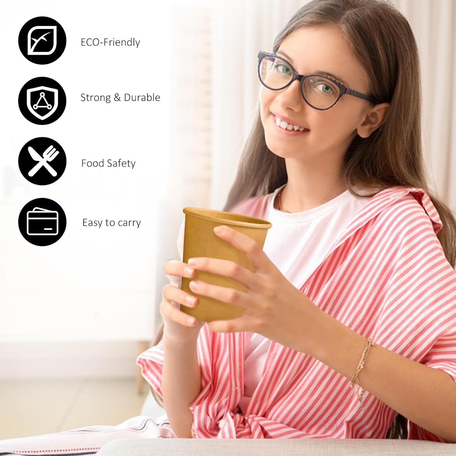 1000 Pack 8 oz Paper Cups, Brown Kraft Disposable Paper Coffee Cups, Unbleached Paper Cups for Hot/Cold Beverage Party, Picnic, Travel, and Events.