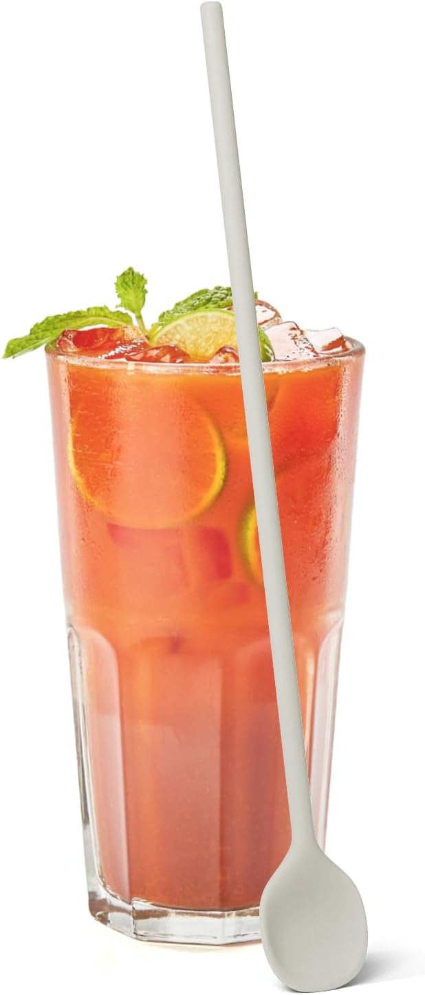 carrotez 9.9" Silicone coffee stirrer, Long Coffee Spoon, Reusable Iced Tea Spoon, Multipurpose Beverage Stirring Spoon - Ivory
