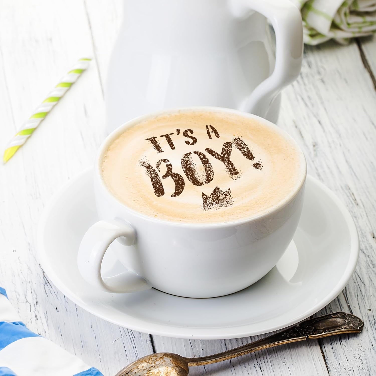 NAKLEO Coffee Stencils and Cookies Decoration 14Pcs 2.8”x2.8” and 4.3”x4.3”, Reusable Plastic Baking Templates, Baby Shower Newborn, Barista DIY Art Craft, Capuccino Latte Chocolate Cake Biscuit