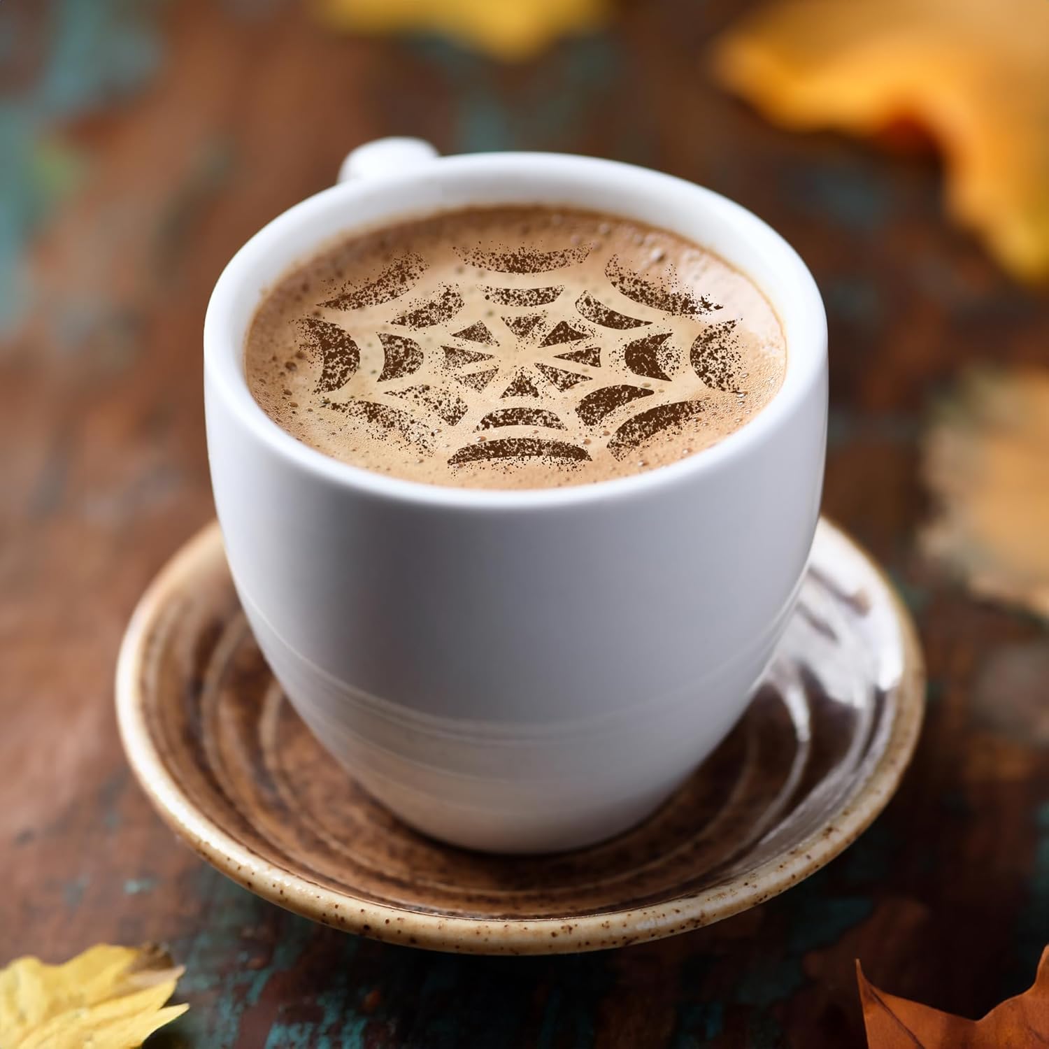 NAKLEO Coffee Cookies Decoration Reusable Plastic Baking Stencil - 7x7cm and 11x11cm / 2.8'x2.8' and 4.3'x4.3' - Halloween Ghost Spider - Art Craft DIY Biscuit Pastry Cake Glaze Kitchen