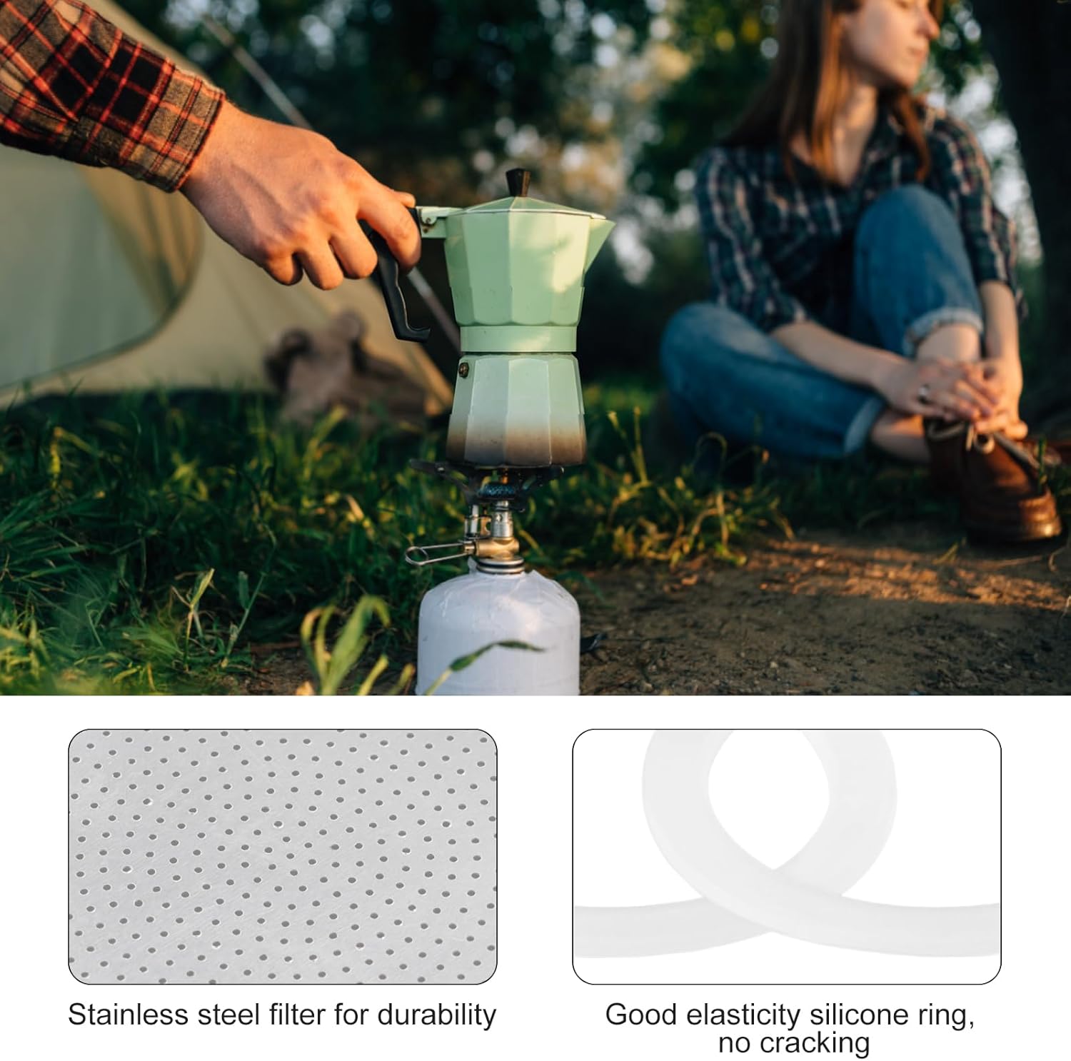 - WIDE COMPATIBILITY: These replacement parts are designed to fit aluminum espresso moka pots from various brands. They are suitable for a range of temperatures and offer great practicality. Don't let a damaged gasket stop you from enjoying your favorite coffee—simply replace it. For optimal performance, we recommend replacing the gasket every 3 to 4 months and the filter screen annually.
