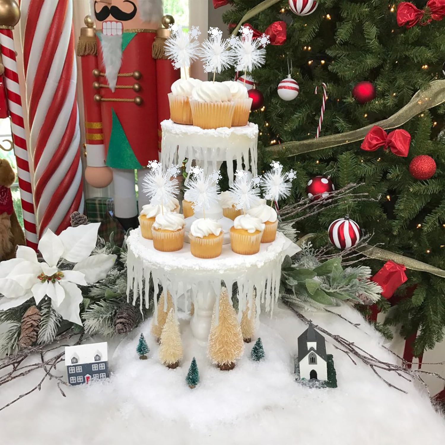 Gyufise 20Pcs Foil Firework Cupcake Toppers Sparkle Tinsel Cake Toppers Tinsel Drink Cake Decoration Cocktail Picks for Birthday Wedding Graduation Party Supplies White