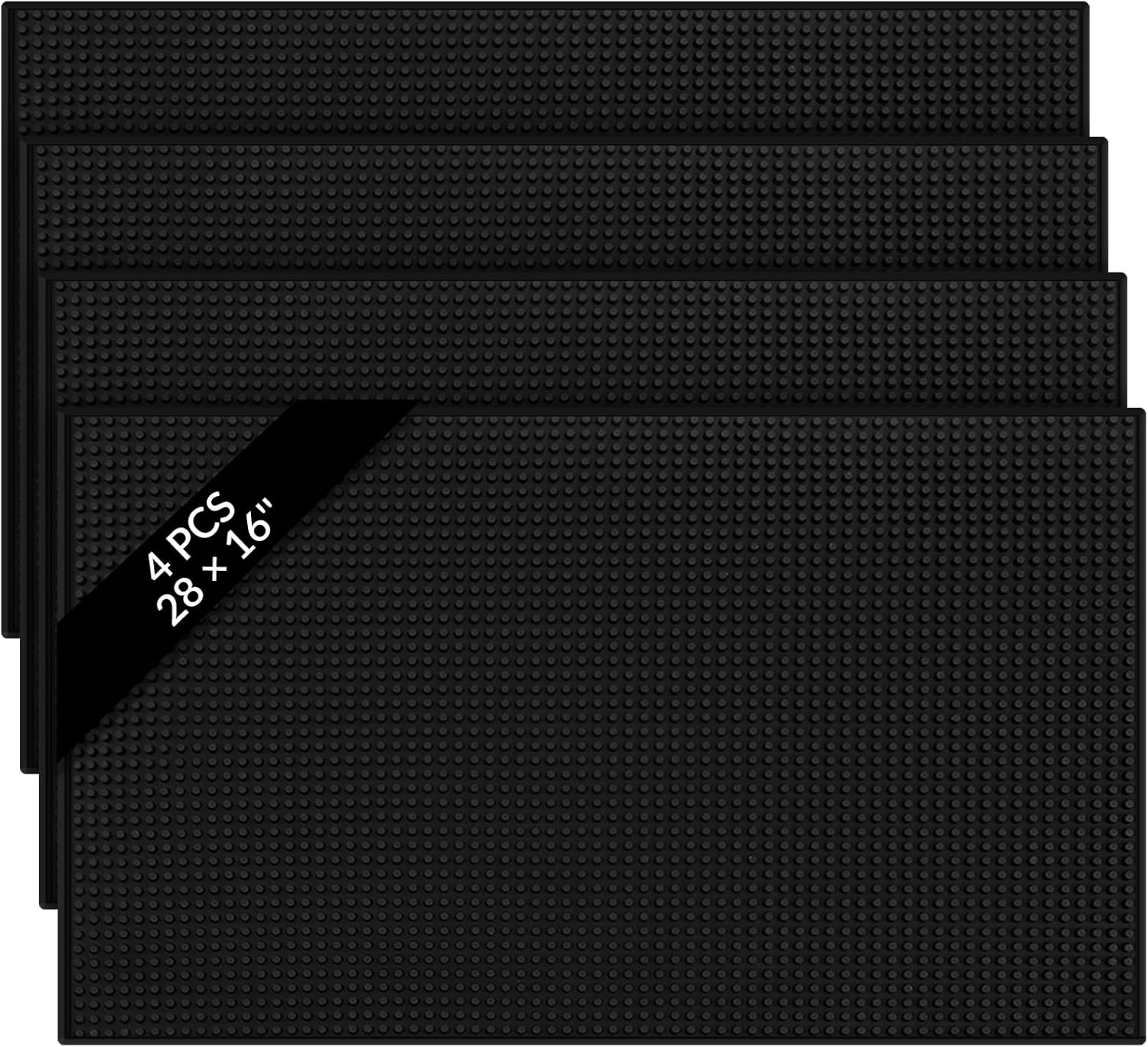 Tioncy 4 Pcs Large Size Bar Mat for Countertop 28 x 16 Inch Non Slip Rubber Mat Service Spill Cocktail Bartending Coffee Bar Mats for Hot Dishes Restaurants Barbershop Clippers Hot Pads, Black