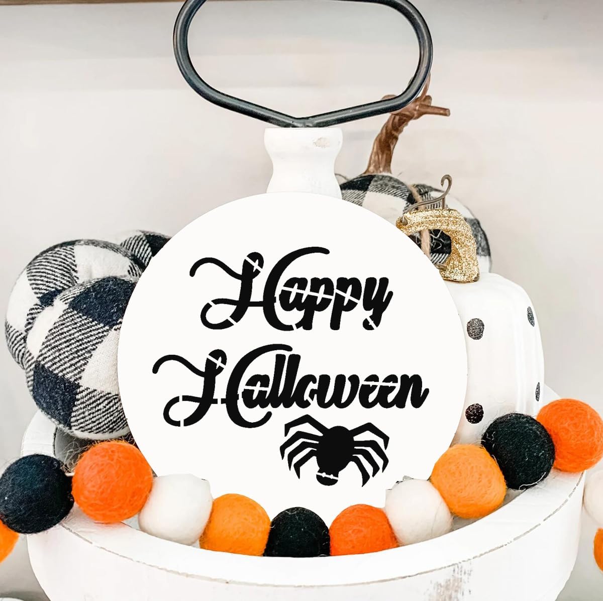 - Halloween Stencils:This cute Halloween stencils set comes with 56 patterns including bat/witch/spider/ghost/scary cat/candy,which will definitely bring you spooky and horror atmosphere. Paint these stencils onto a mini round wood to create a festive sign or use it on any flat surface to add holiday details.