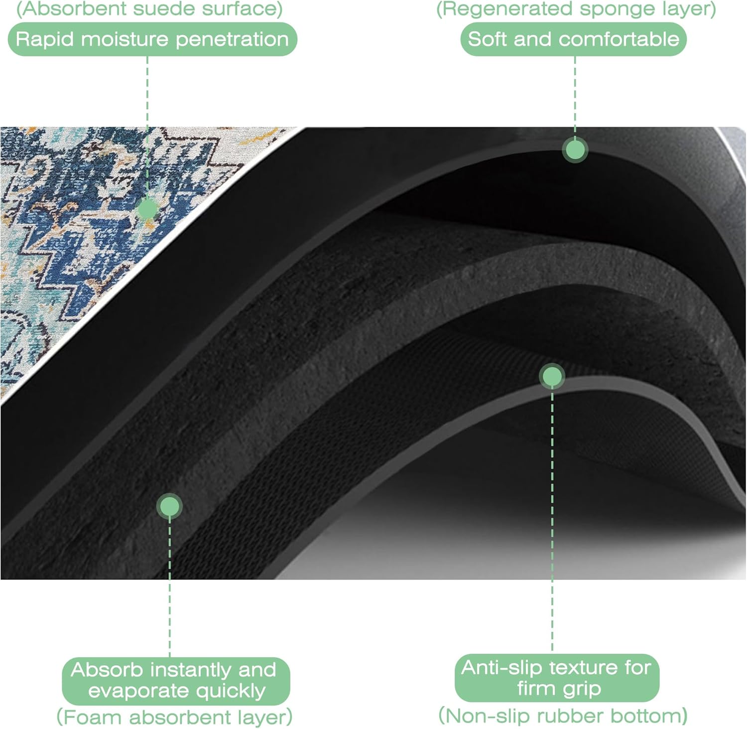 Bohemian Textile Rug Texture Dish Drying Mat,16"X24" Absorbent Fast Dish Drying Mat for Kitchen Counter Pot and Pan, Kitchen Accessories