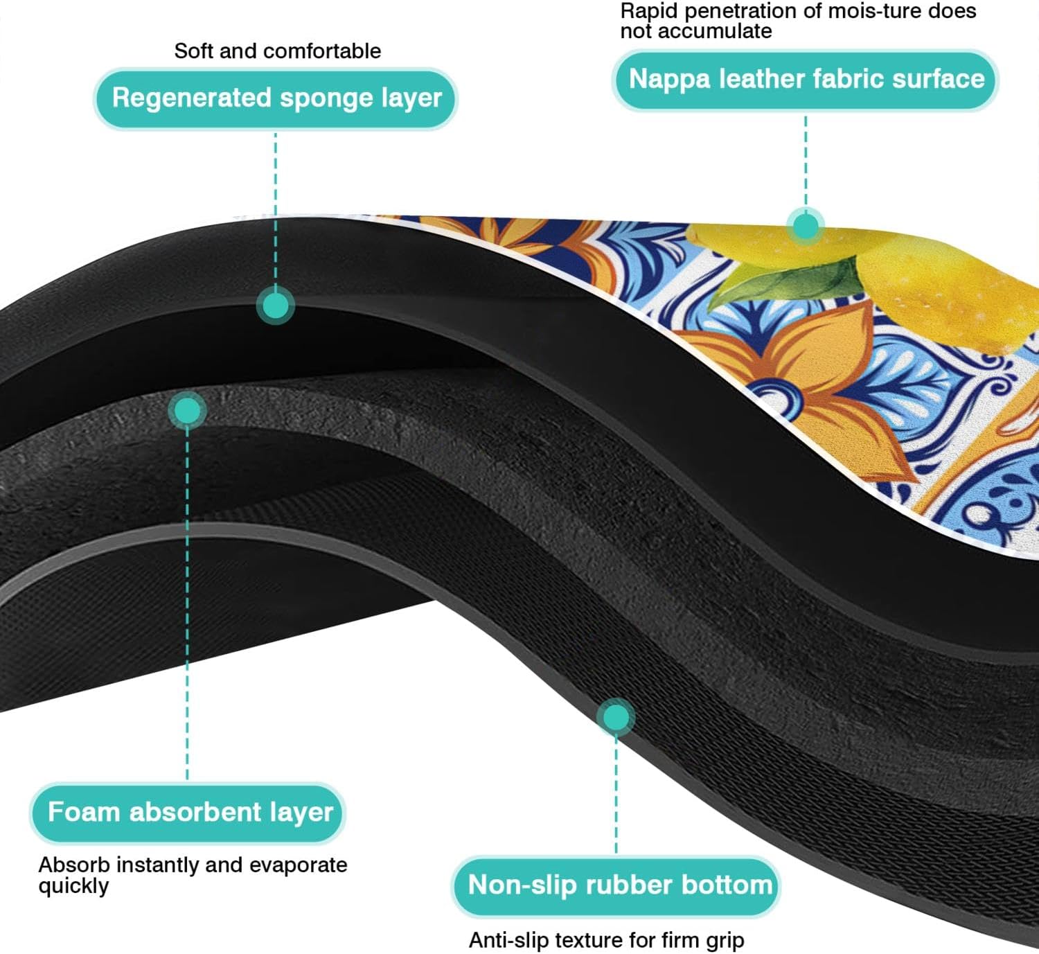- RUBBER BACKING: The natural rubber bottom of the dish drying mat pad has a good anti-slip effect. Put the dish on the rug and the anti-slip bottom will be absorbed on the table to prevent it from moving. The waterproof bottom can prevent spilled liquid from damaging the tabletop and keep the kitchen countertop clean for a long time.