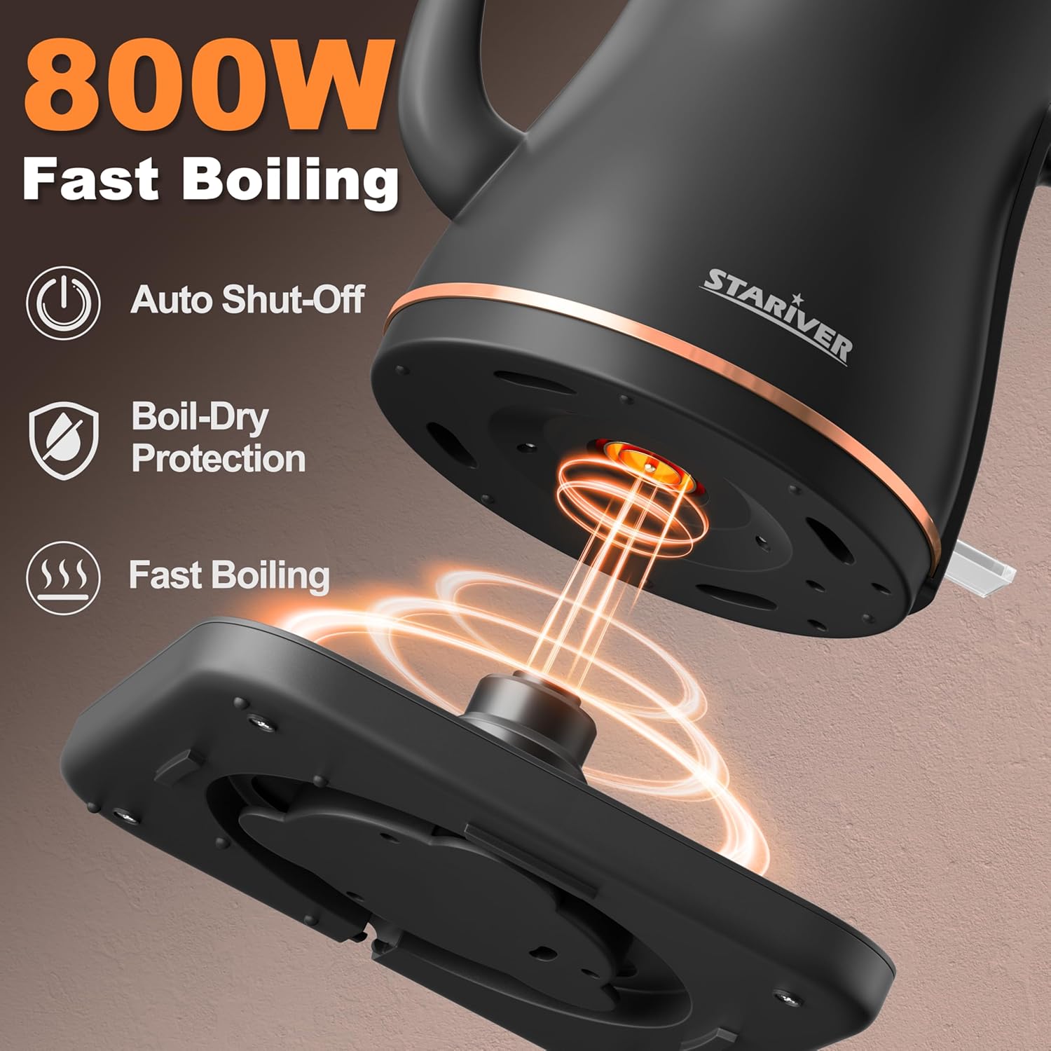 Stariver Gooseneck Electric Kettle, 0.8L Electric Tea Kettle Tea Pot, Pour Over Coffee Kettle with Stainless Steel Inner Lid & Bottom, Water Boiler with Auto Shut Off and Boil Dry Protection, Black