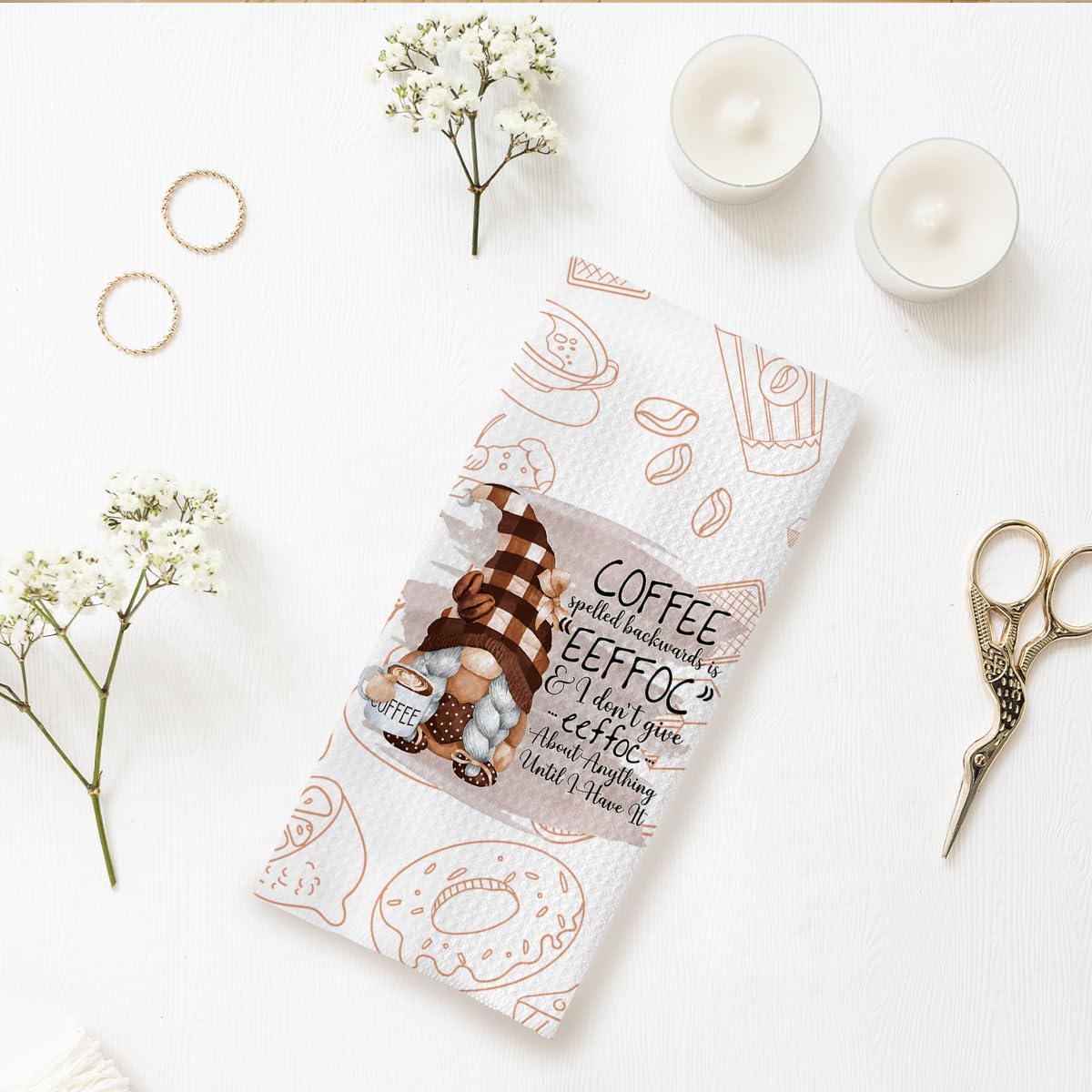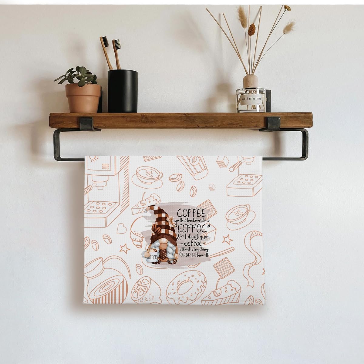 Coffee Gnome Kitchen Towels for Bar Decor - Funny Dish Tea Towels, Lover Gifts, 16x24 Inches