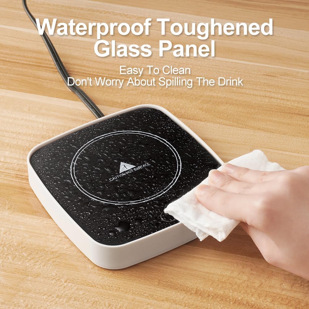 - ☕【Safe And Durable】 This coffee cup warmer is made of waterproof tempered glass and ABS flame-retardant material.Intimate auto shut-off function, even if the work is too busy, the coffee cup warmer can be automatically turned off.
