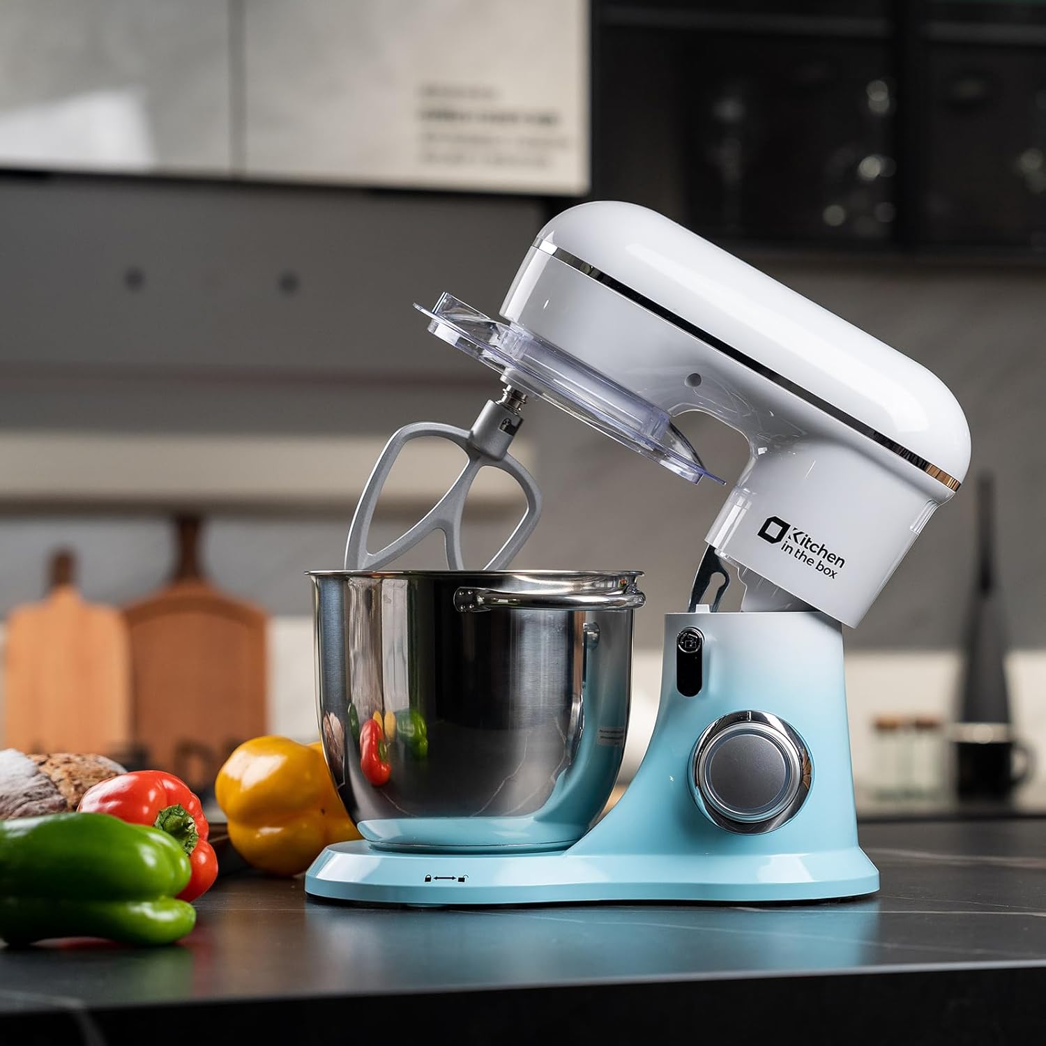 Kitchen in the box Stand Mixer, 5QT + 4.5QT Two bowls Electric Food Mixer, 10 Speeds Kitchen Mixer for Daily Use with Egg Whisk,Dough Hook,Flat Beater (Gradient Blue, 5QT)