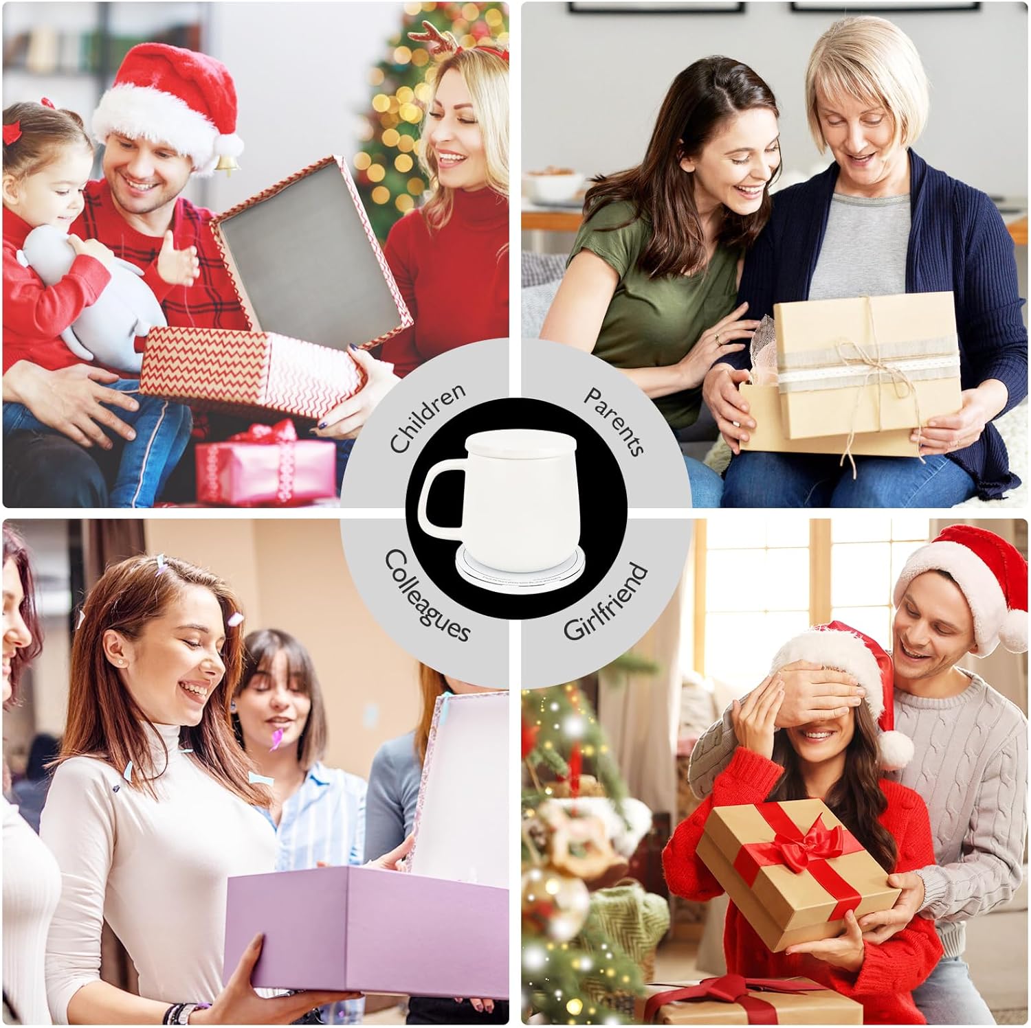 - Self-Heating Function: Experience all-day warmth with our advanced self-heating mug. The built-in temperature control chipset keeps your beverages—be it coffee, tea, or hot cocoa—consistently warm at an ideal 131°F (55°C). The set includes a sleek 380 ml ceramic mug perfect for enjoying your favorite drinks.